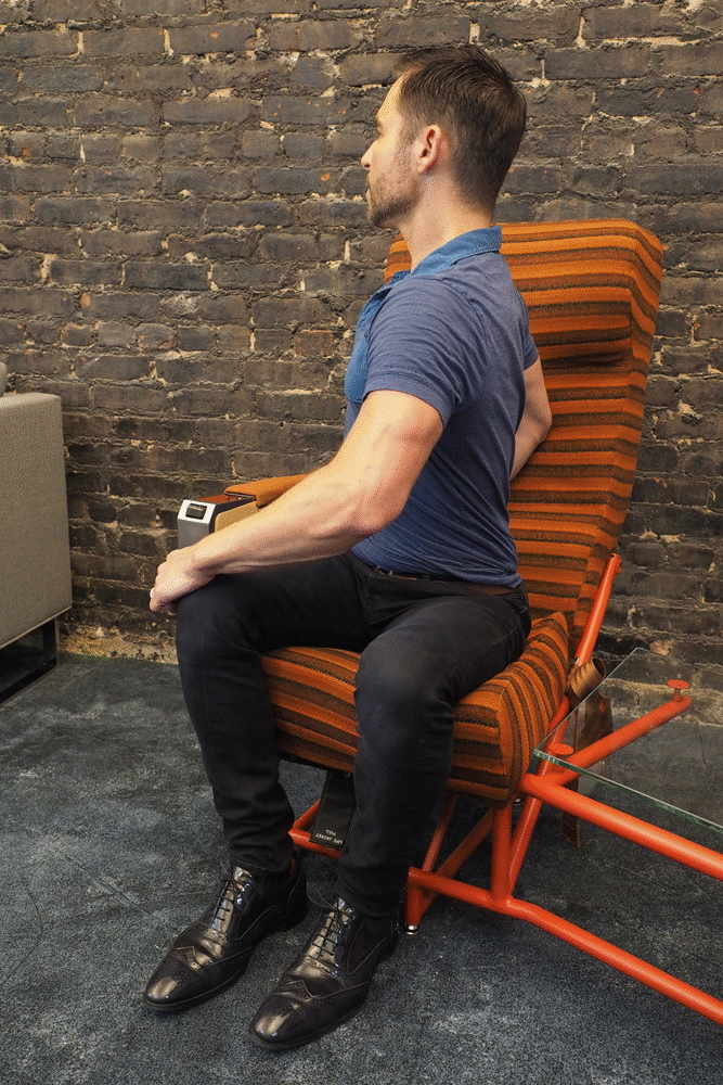 During a flight, our shoulders tend to slouch forward, our torso tends to slouch down and our chest muscles tend to become tight. This exercise helps stretch these muscles and shift postural patterns.