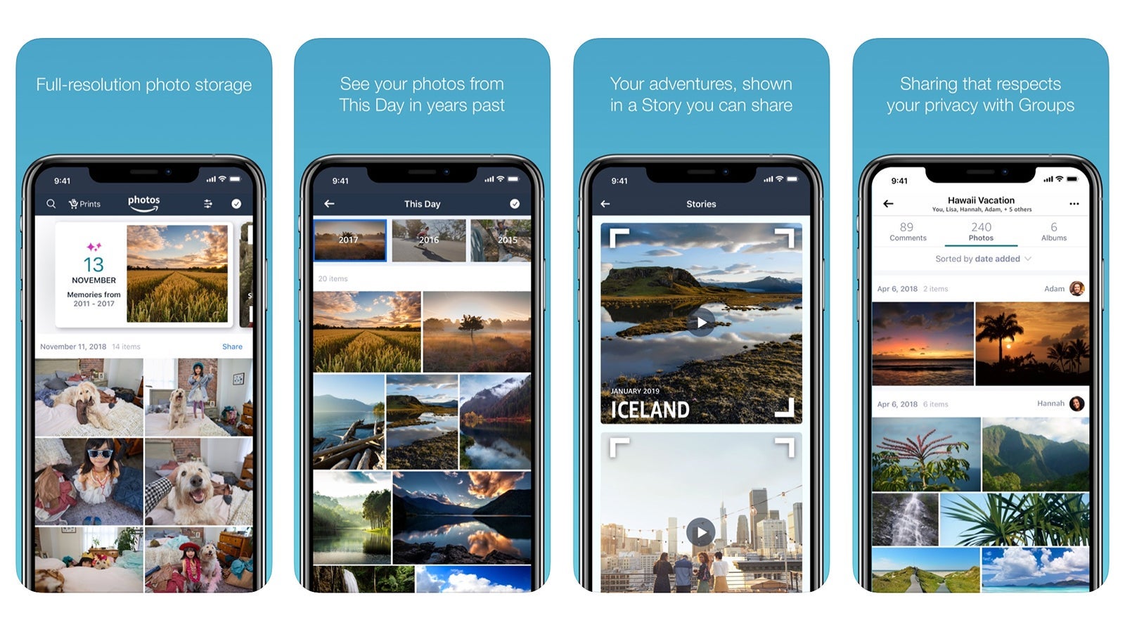 Google Photos is ideal if you want to create specific albums for many different trips, places or events. It's similar to Dropbox in that you can set it to automatically upload all the photos you take and you can share specific albums with others. The app can be set to upload any shots you've snapped on your phone, or also use it to take photos from a camera you've put on a desktop or laptop computer. If you love using Google Docs, Google Drive, Gmail and Google Sheets, this app integrates seamlessly with all of them, making it easy to share photos (and documents) across the board. Rate plans through GoogleOne are available if you need more space (backing up photos, mail and drive) but if you're willing to limit the resolution of your photos (16mp) and videos (1080p HD) you'll get free unlimited storage.