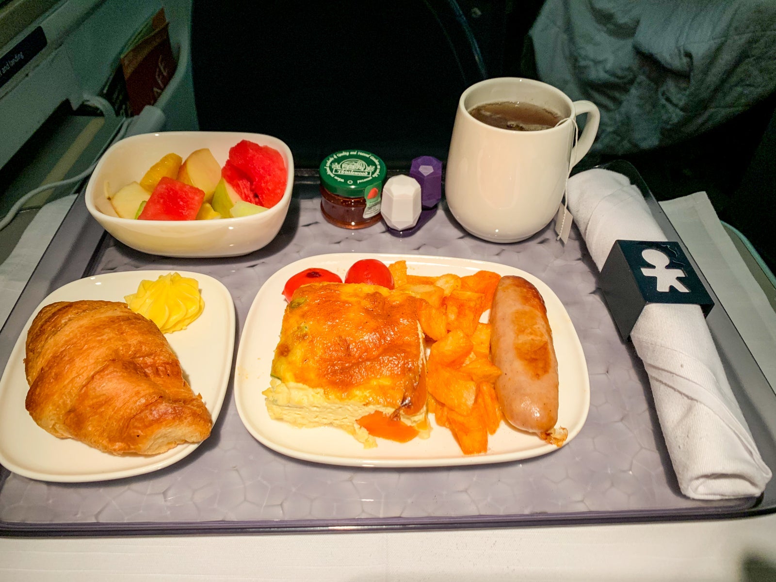 I normally avoid breakfast on planes — unless I have the first flight of the day and skip the lounge.