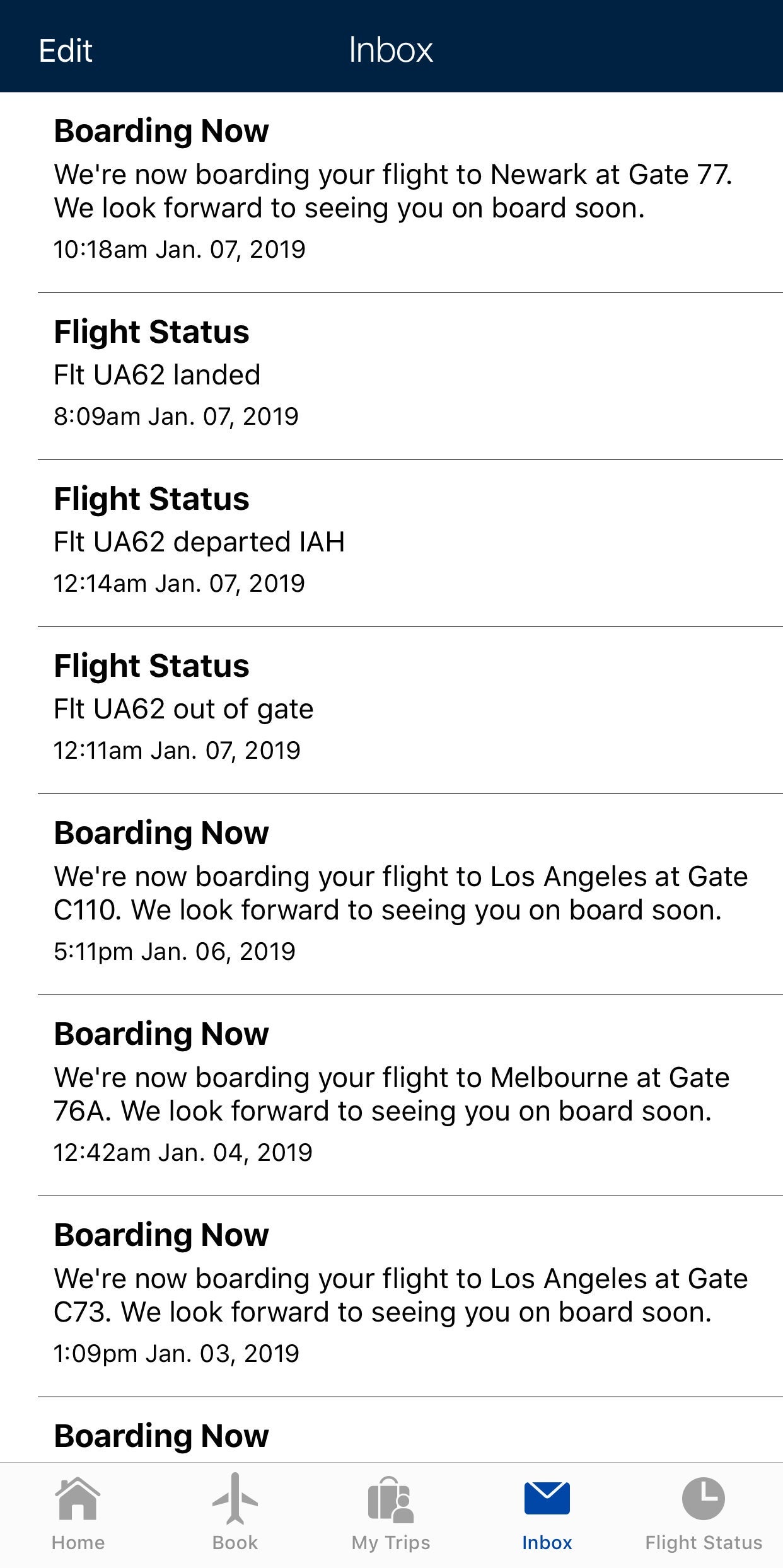 United's been offering push notifications for some time — even to a connected smartwatch — but now they're all stored in one place, the Inbox, also accessible from the homepage.