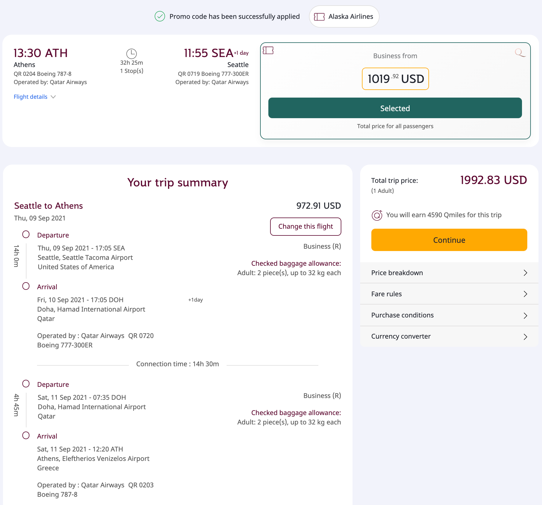 In theory, you can book discounted flights to all 100+ Qatar Airways international destinations, but I wasn't able to trigger the discount on some of the airline's lowest "classic" fares.