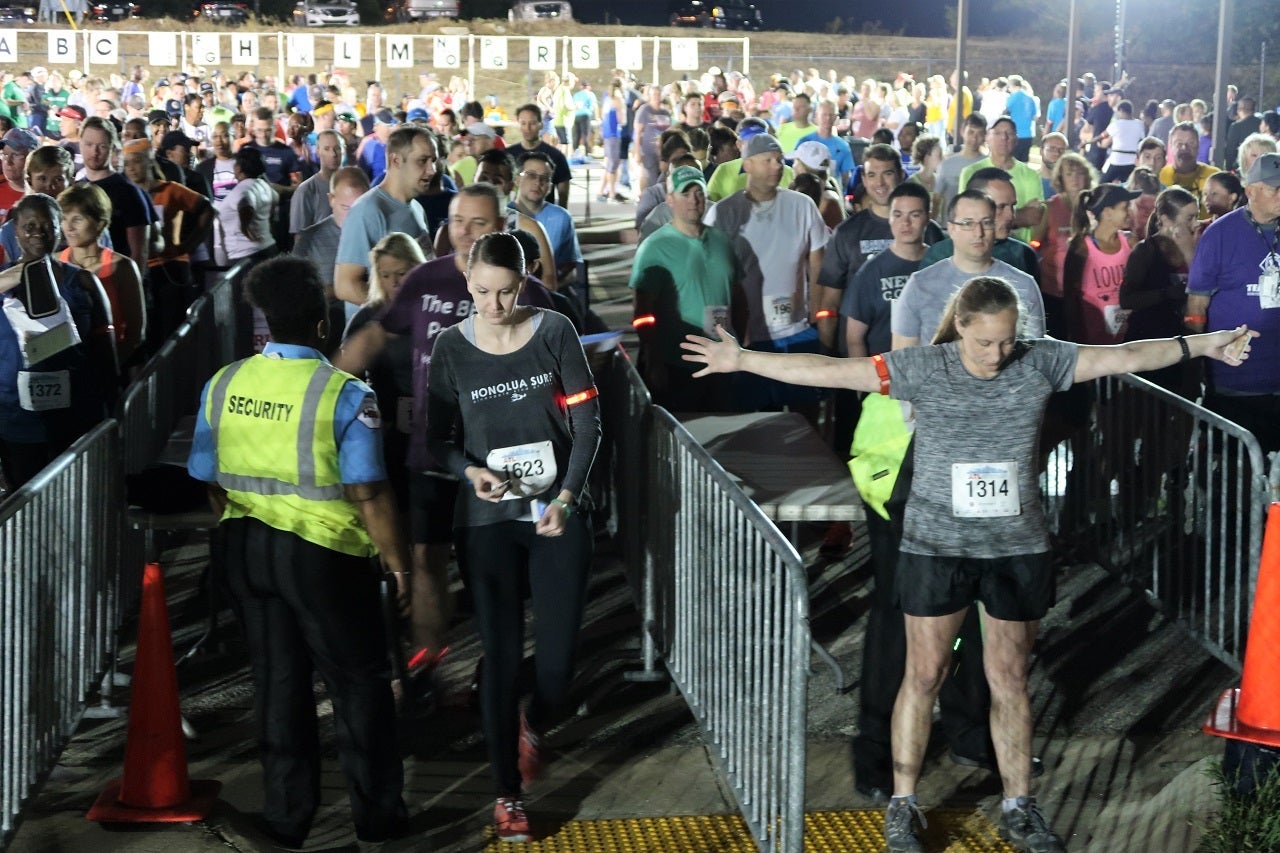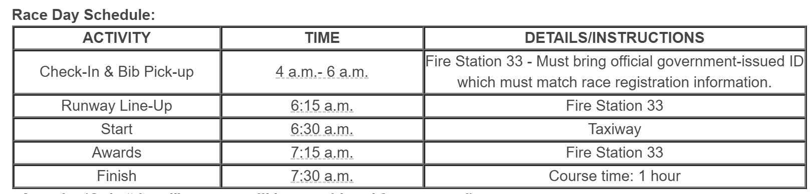 As this is at an active airport, security is still a high priority. In order to retrieve your race bib, you're going to have to show government-issued identification. Then, each racer undergoes a full search from TSA officers using metal detector wands to enter the fire station.