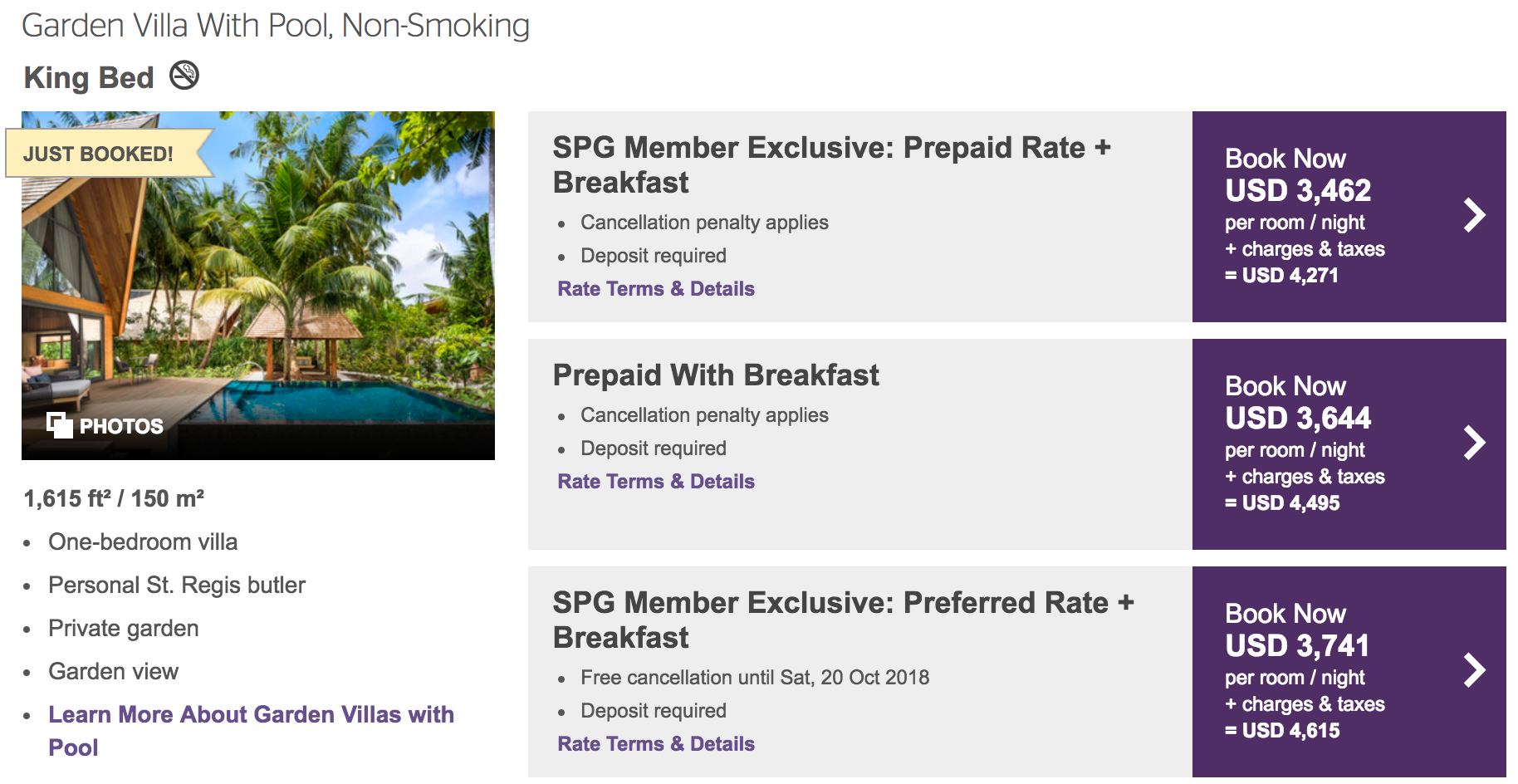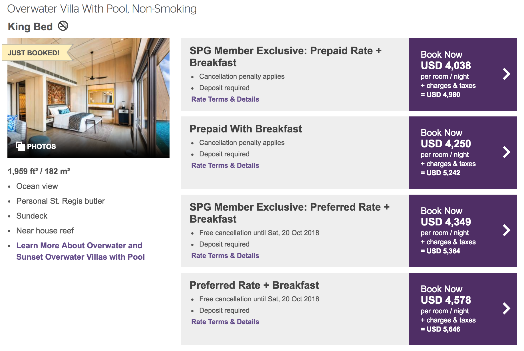 So, yes, 60,000 Marriott points for a night is really happening. However, while the "standard" redemption at the St. Regis Maldives is currently an Overwater Villa With Pool (which is already pretty generous), it's possible that a Garden Villa could become the new base award once the new rates kick in. But even that suite type is nearly as pricey: