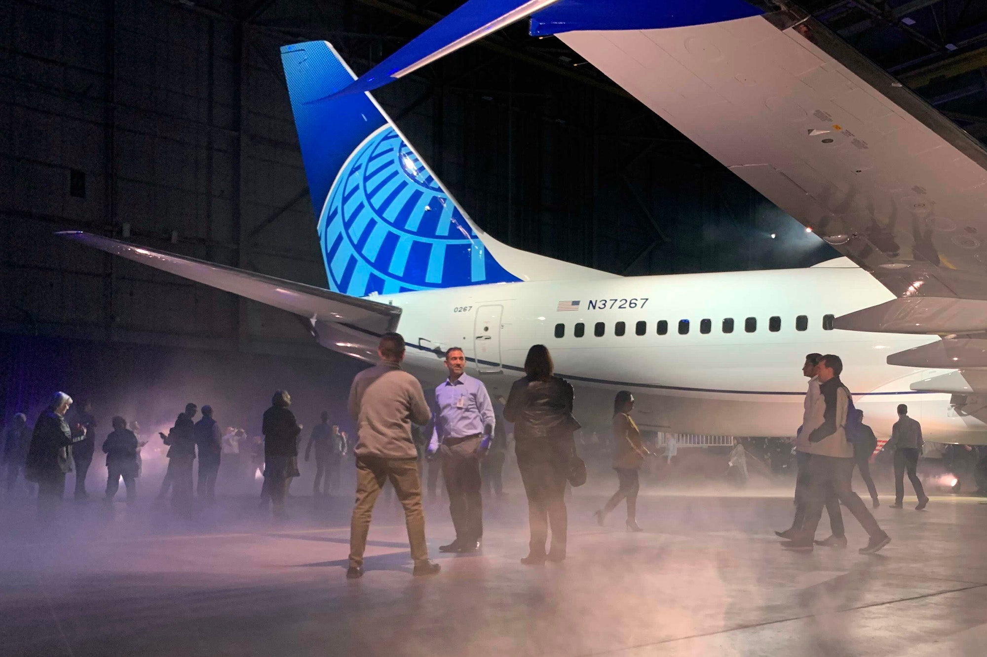 United's new extra-blue livery is officially official — yes, for the second time. After a leaked image prompted United Airlines to unveil its brand-new design ahead of schedule last night, CEO Oscar Munoz and hundreds of other employees gathered at a Chicago O'Hare hangar to show off the first repainted plane earlier Wednesday.