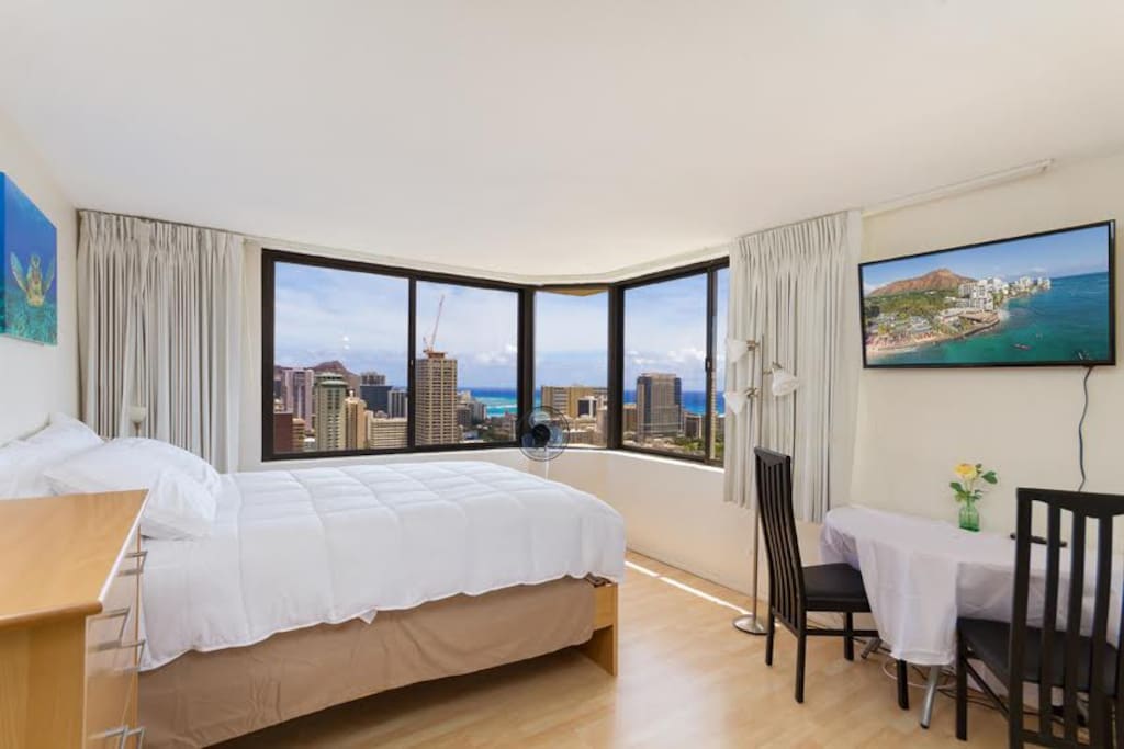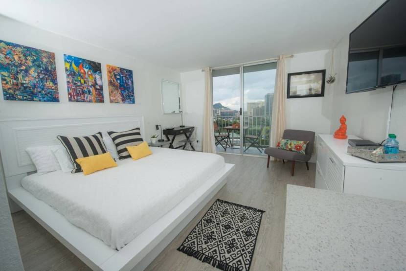 For serious beach bums, the ocean-view studio in Waikiki is the place to be. It's the perfect nest for travelers who wish privacy and tranquility while enjoying the island's natural beauty. Look for tasteful decorations and all the amenities you'll need for your stay. This quaint enclave has a balcony and is just steps away from the beach. So be sure to bask in this scenic location and take in the ocean breeze from the comfort of your stay.Rates from $125 per night with a three-night minimum stay required.