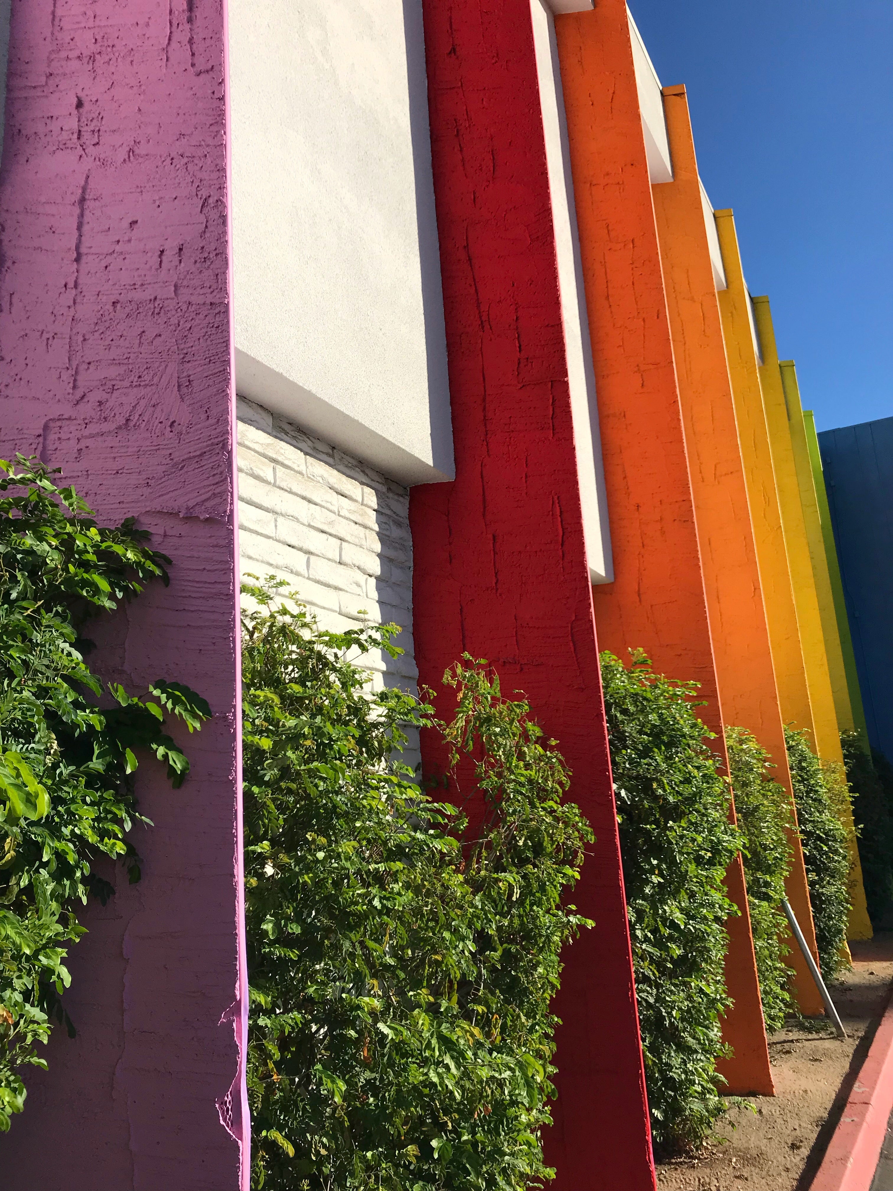 If you follow me on Instagram, you have probably seen many of these shots, but they were so fun to experience first-hand that I have to share them again here in the hopes that they might inspire someone to include Palm Springs on a trip out west. I know I want my girls to see the fiery sunsets, enjoy the warm dry air, and see the abundance of mid-century modern buildings...especially the ones painted with rainbows, their favorite!