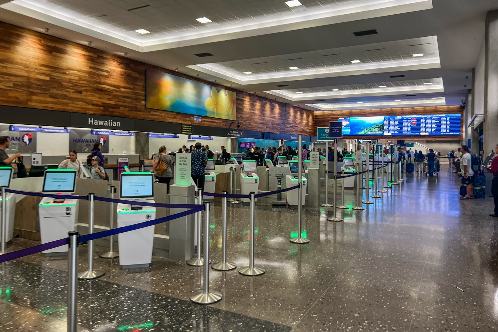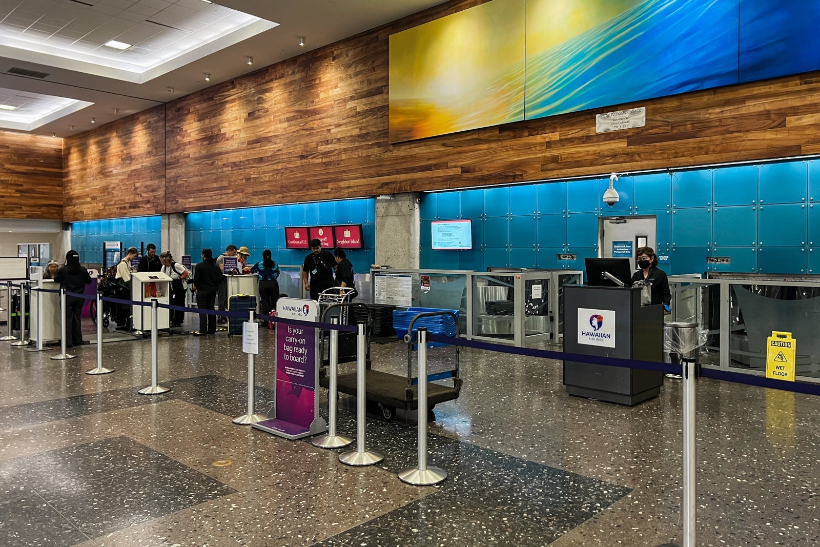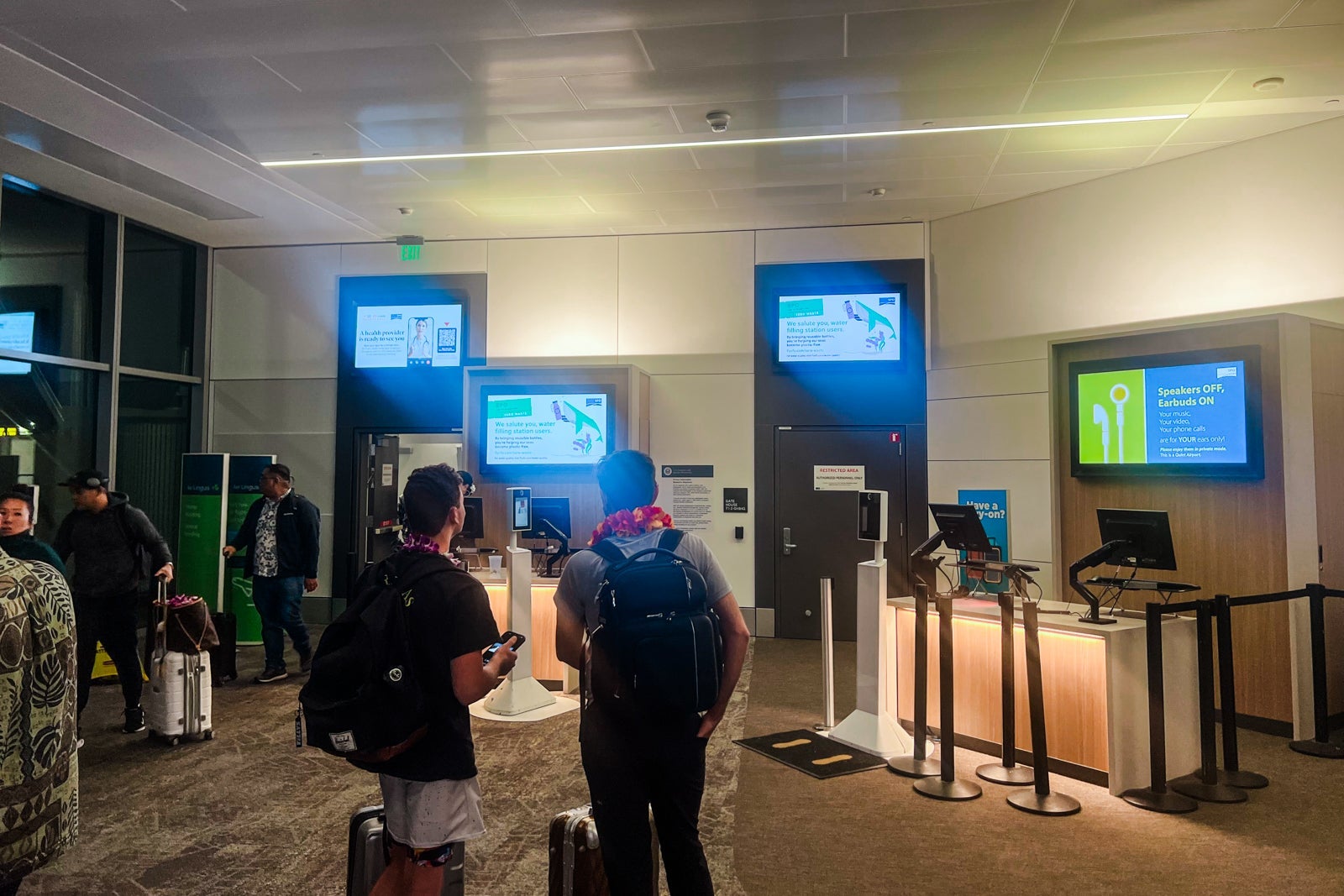There were no signs or balloons or any type of fanfare at the Terminal 1 check-in counters at HNL; however, the boarding gate more than made up for it with traditional Hawaiian music and a celebratory air.