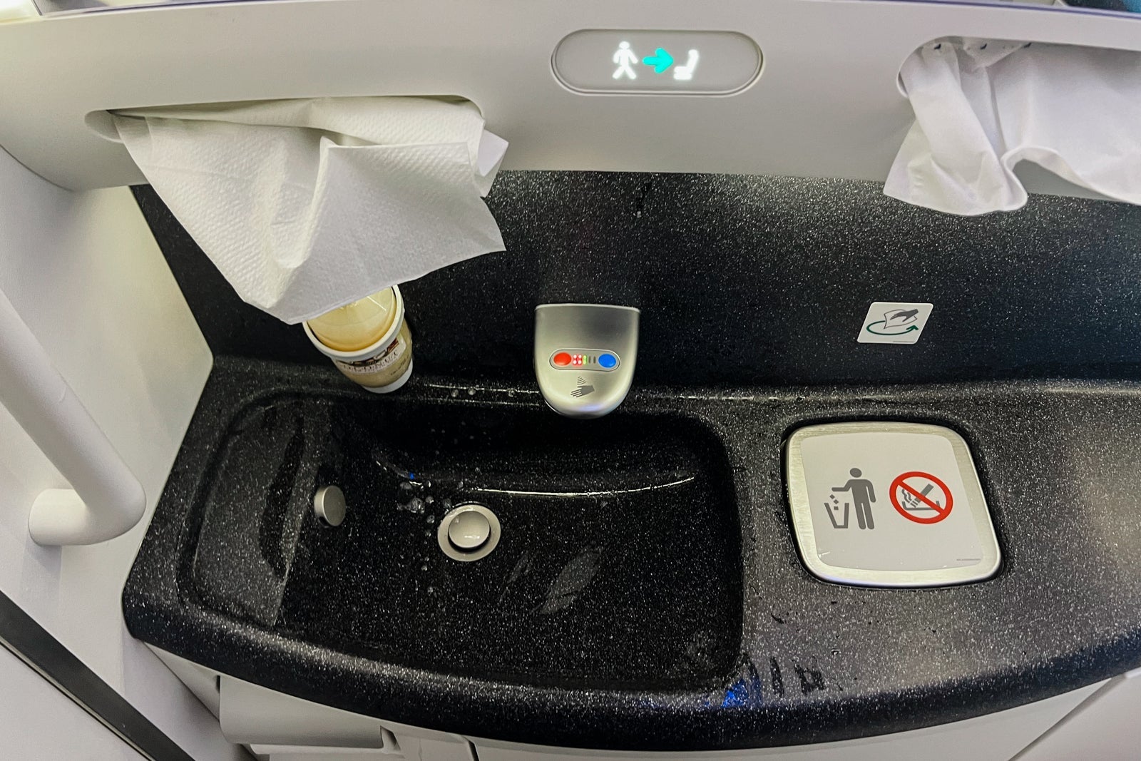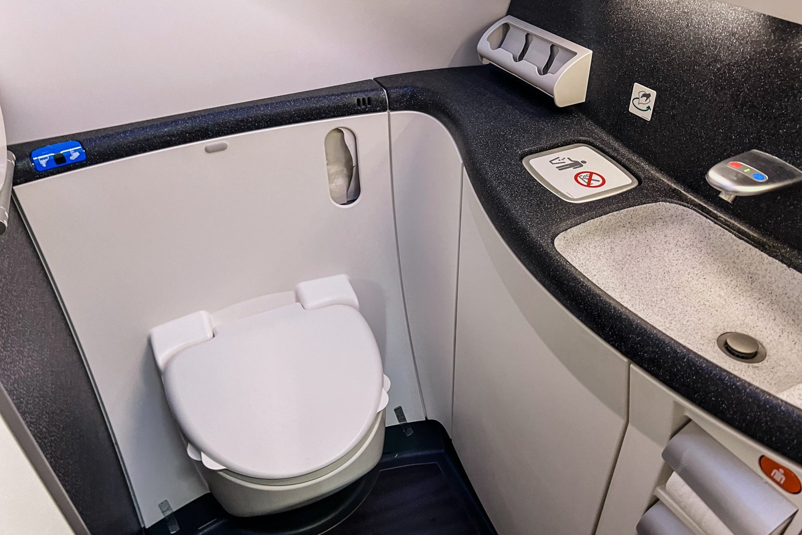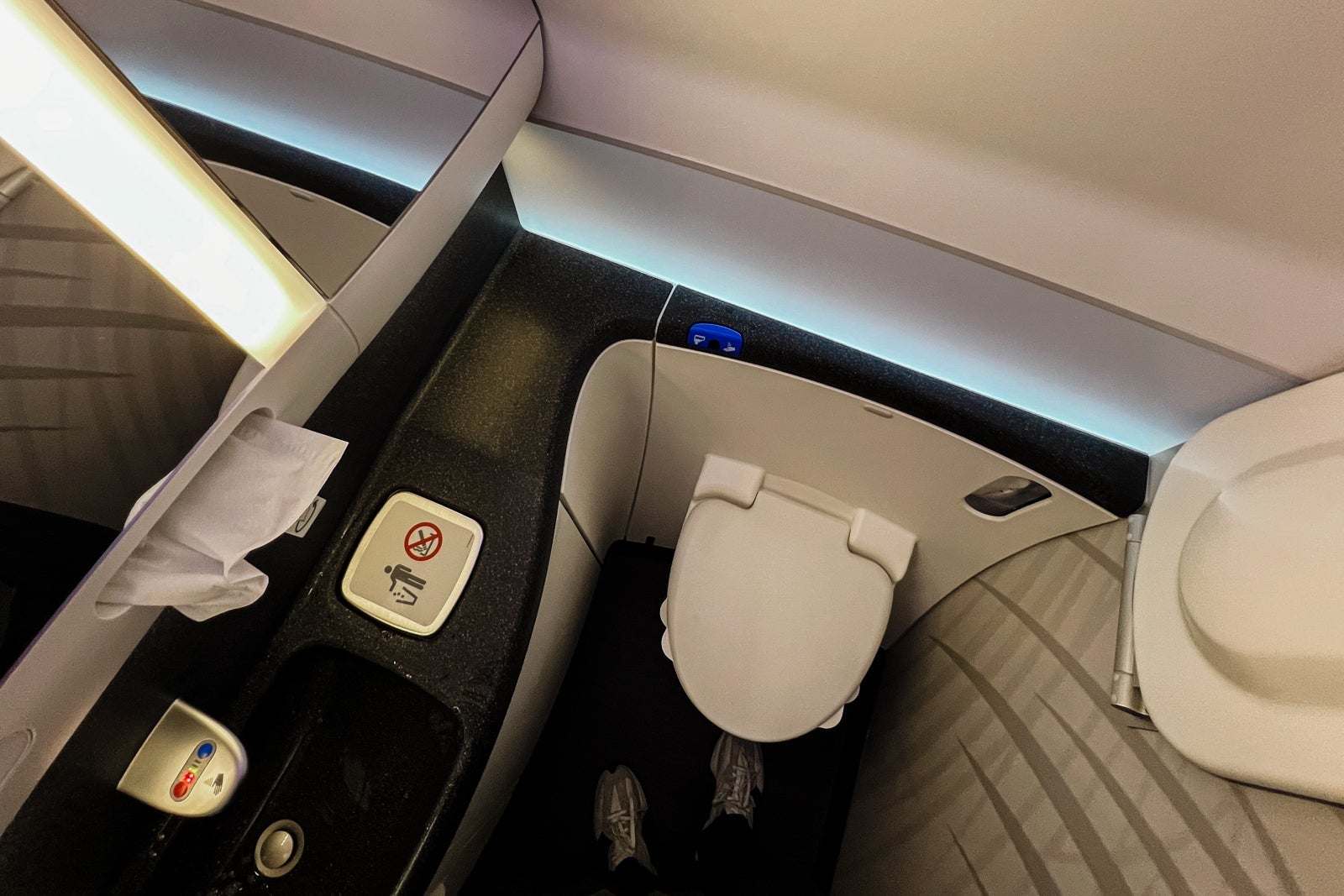 There were five bathrooms in the center of the coach cabin space in front of row 33 as well as another restroom in the very back of the plane. There was rarely a line during the flight, and they were kept clean throughout the journey.
