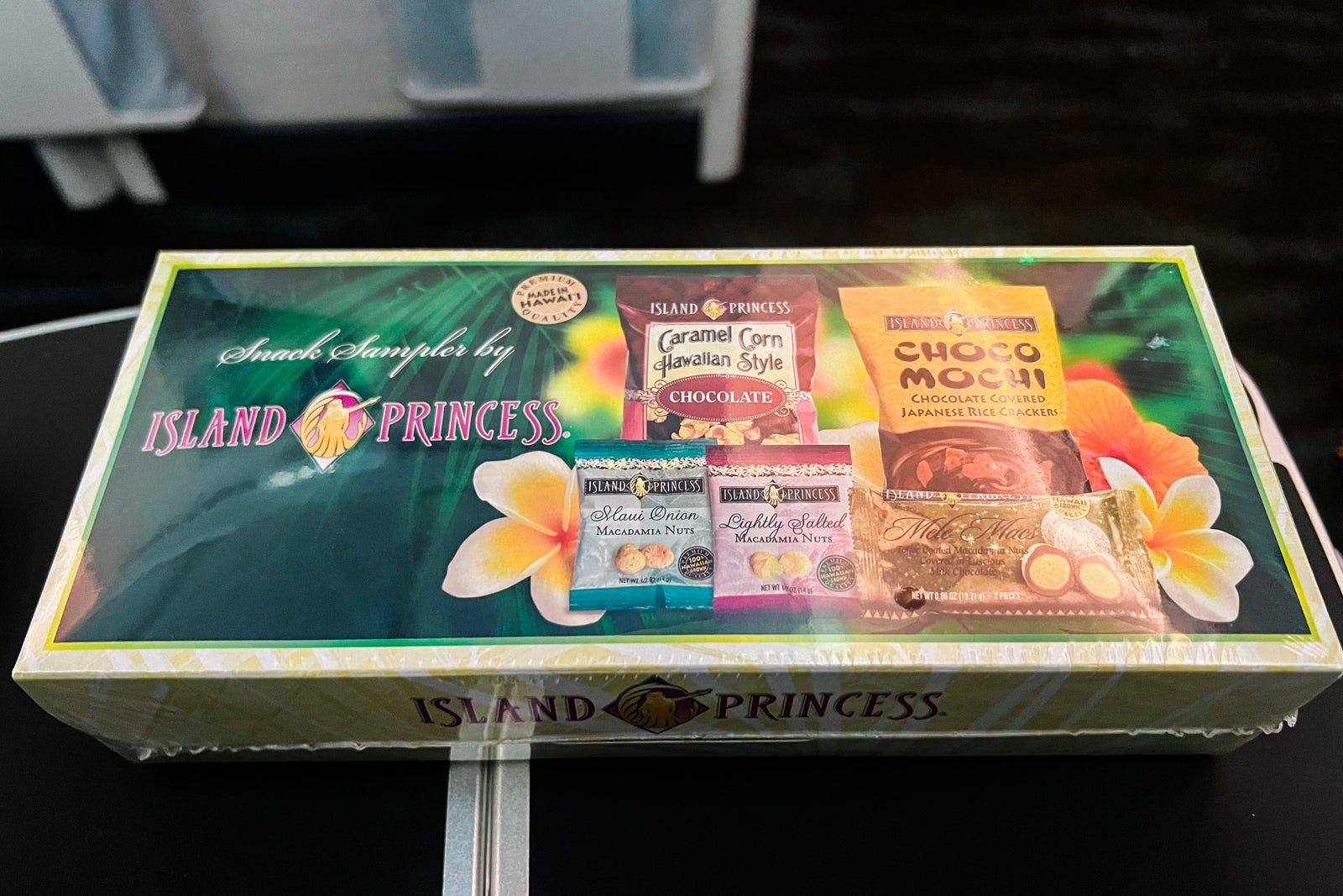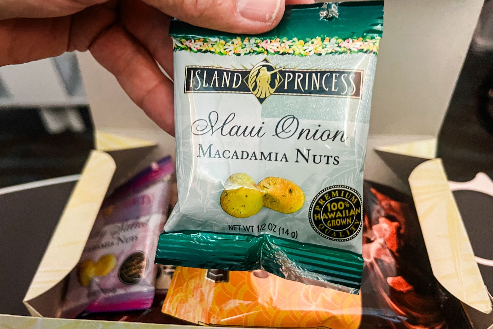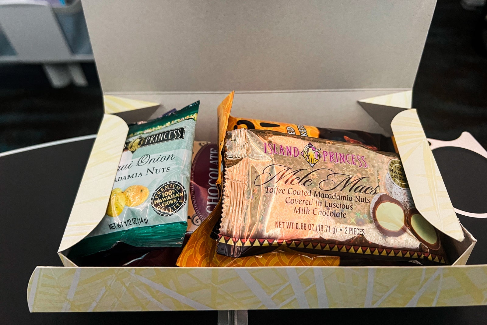 I bought the "Made in Hawaii" snack sampler for $10.50. It included chocolate Carmel popcorn, Choco Mochi and two types of packaged macadamia nuts, among other treats. I used my Hawaiian Airlines® World Elite Mastercard®, and of course there was a credit card offer onboard as well for up to 65,000 Hawaiian Airlines miles. Too bad I already have the personal and business versions. The information for the Hawaiian Airline World Elite Mastercard has been collected independently by The Points Guy. The card details on this page have not been reviewed or provided by the card issuer.