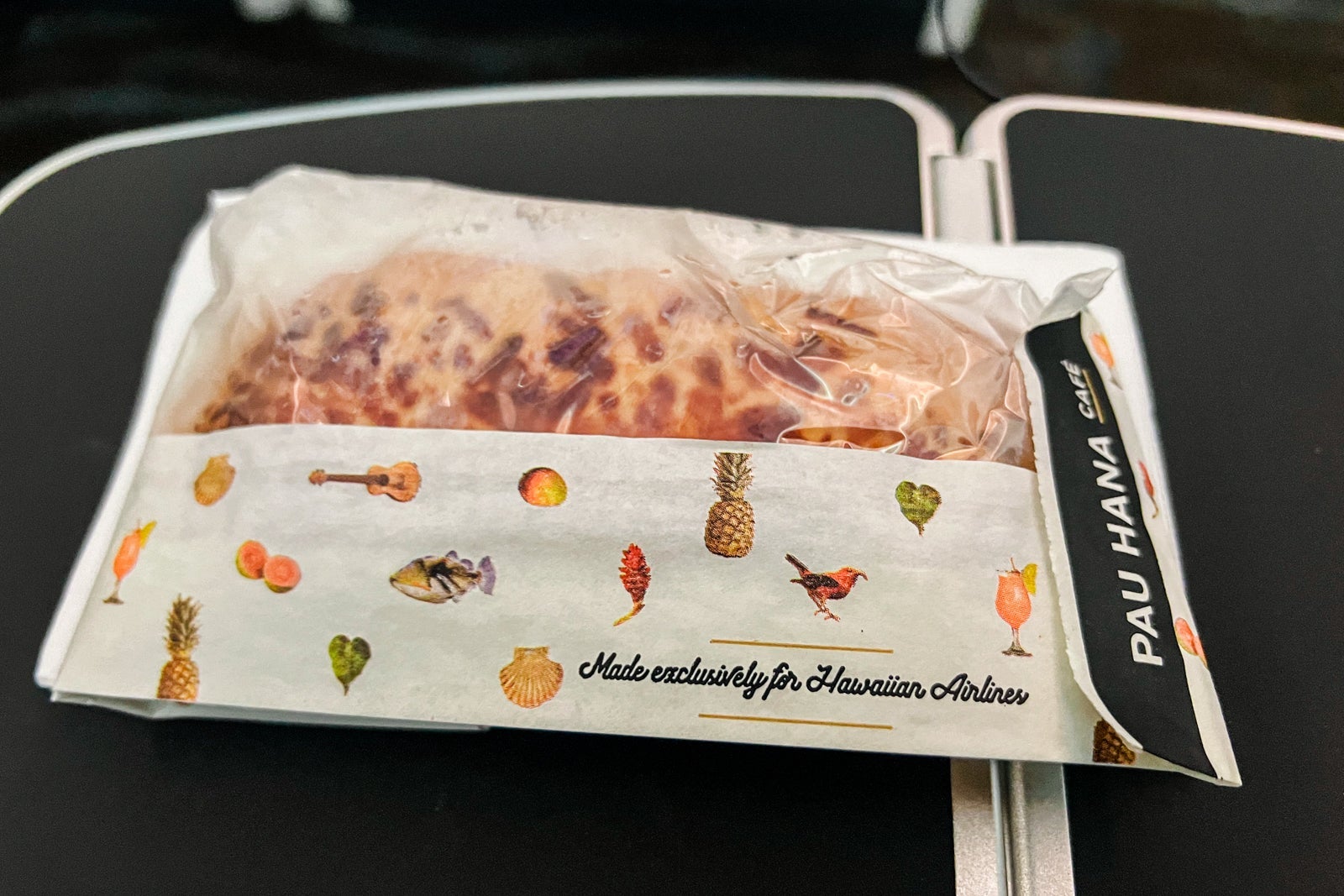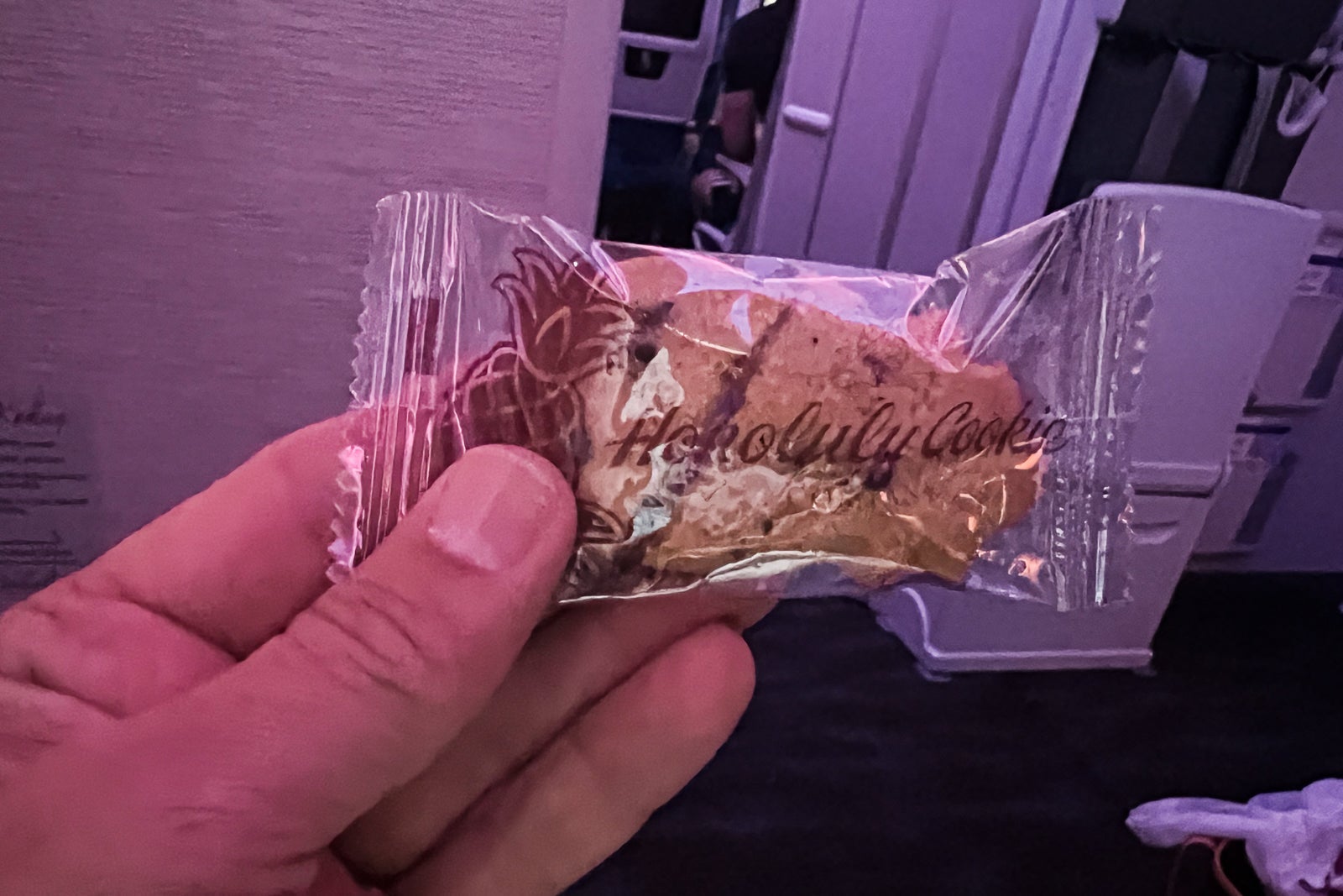 About an hour before landing, flight attendants handed out pineapple-shaped cookies from Honolulu Cookies.