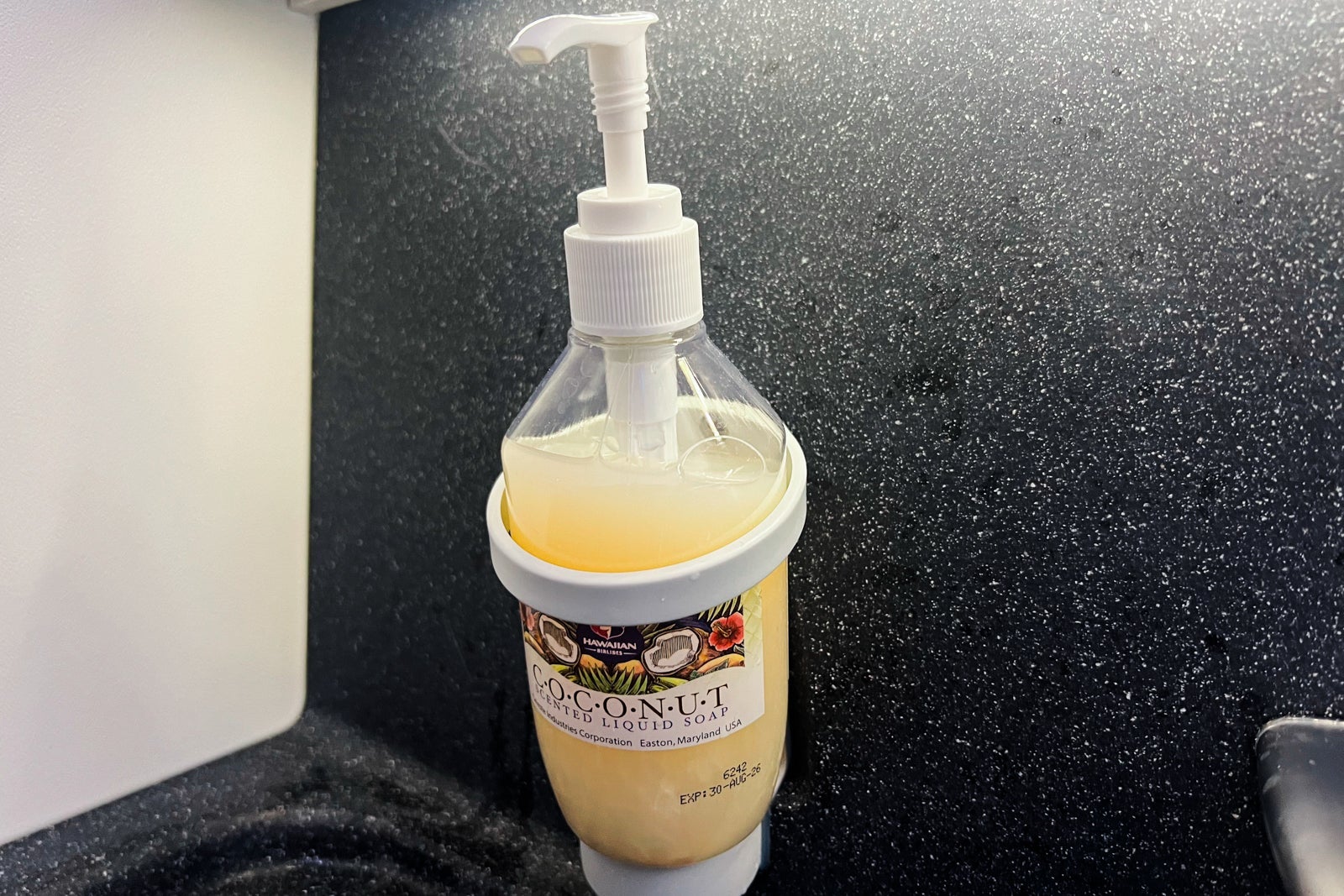 I appreciated the coconut-scented liquid hand soap by Celeste Industries in the bathrooms. Plus, whenever the bathroom doors were shut, there was Hawaiian music playing inside the restroom.