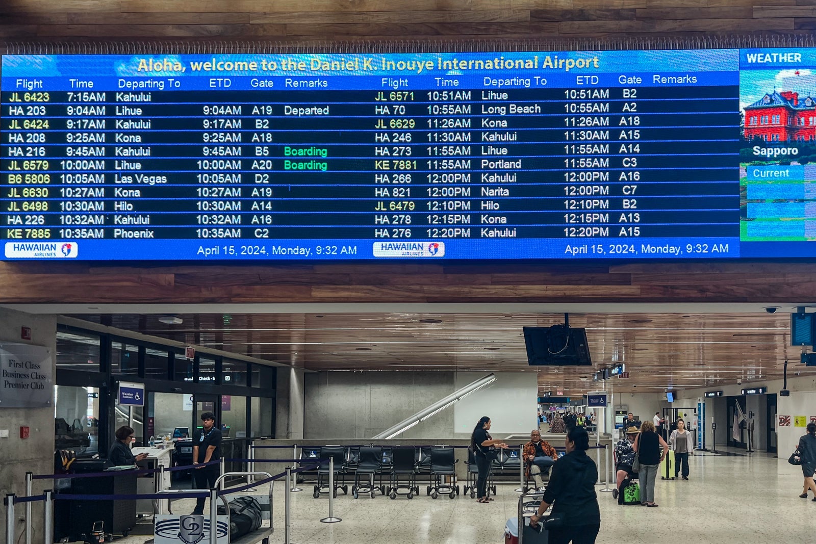 Hawaiian Airlines Flight 12, Hawaiian's Dreamline inaugural flight, left Daniel K. Inouye International Airport (HNL) at 1:18 p.m. and arrived at San Francisco International Airport (SFO) at 9:20 p.m.