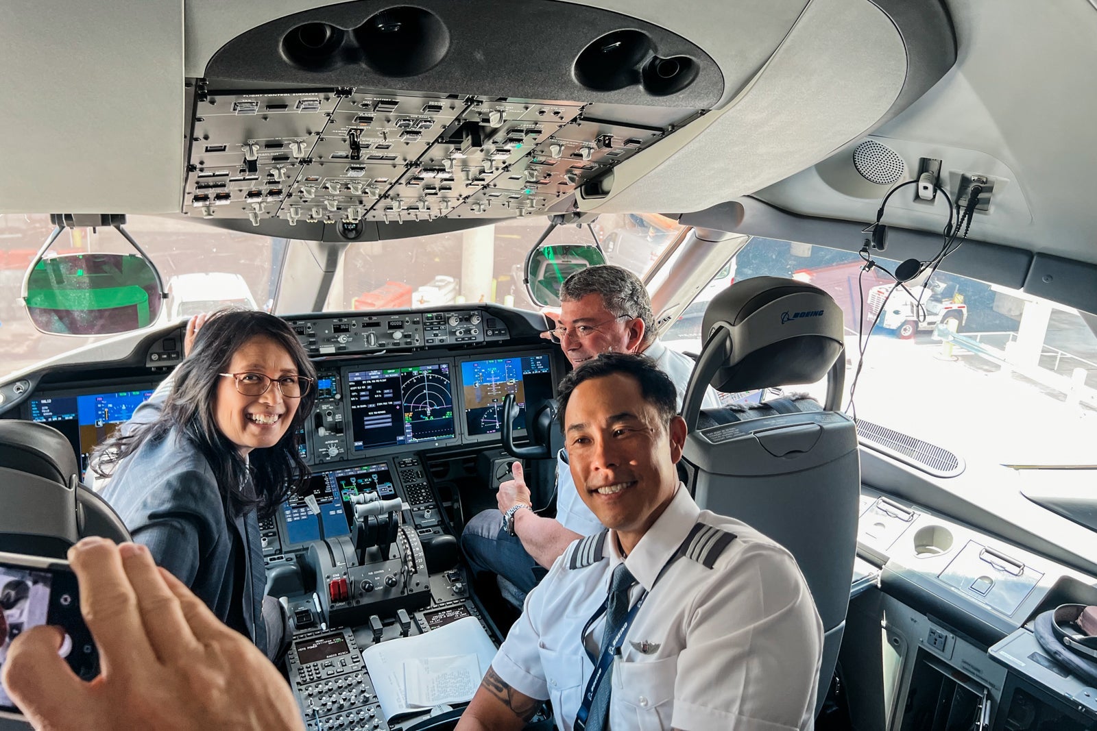 Finally, it was photo op time. Pilots for our flight — as well as other pilots taking part in the inaugural festivities — snapped photos using the Dreamliner as a background.
