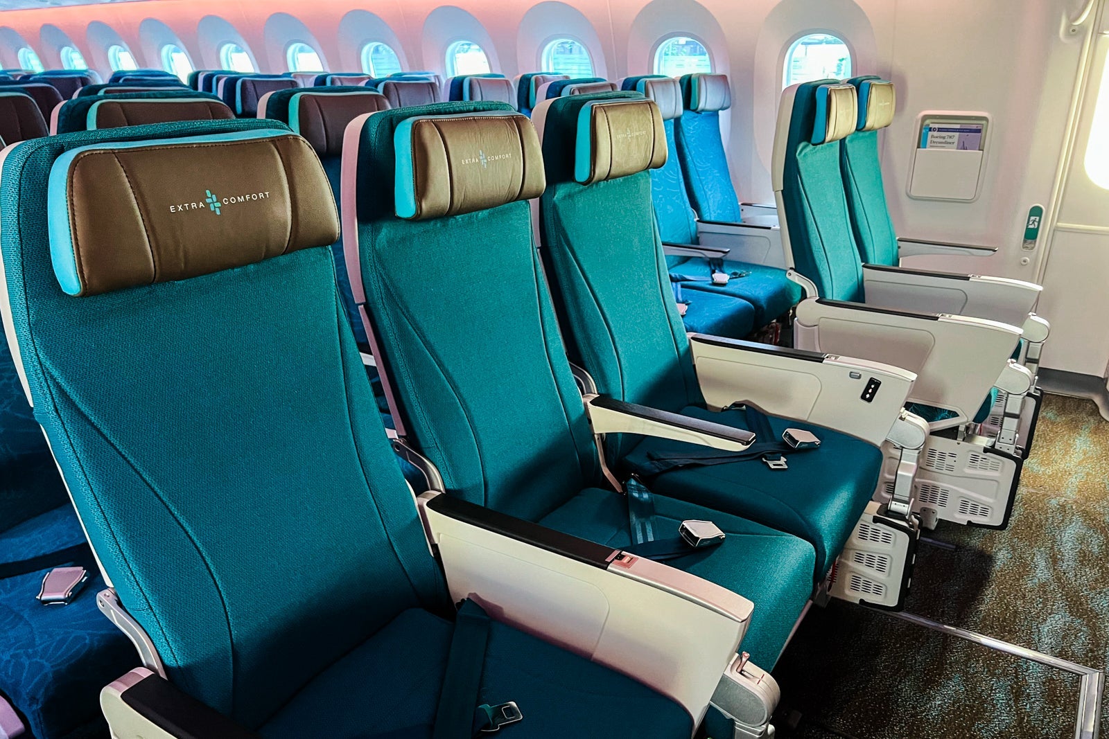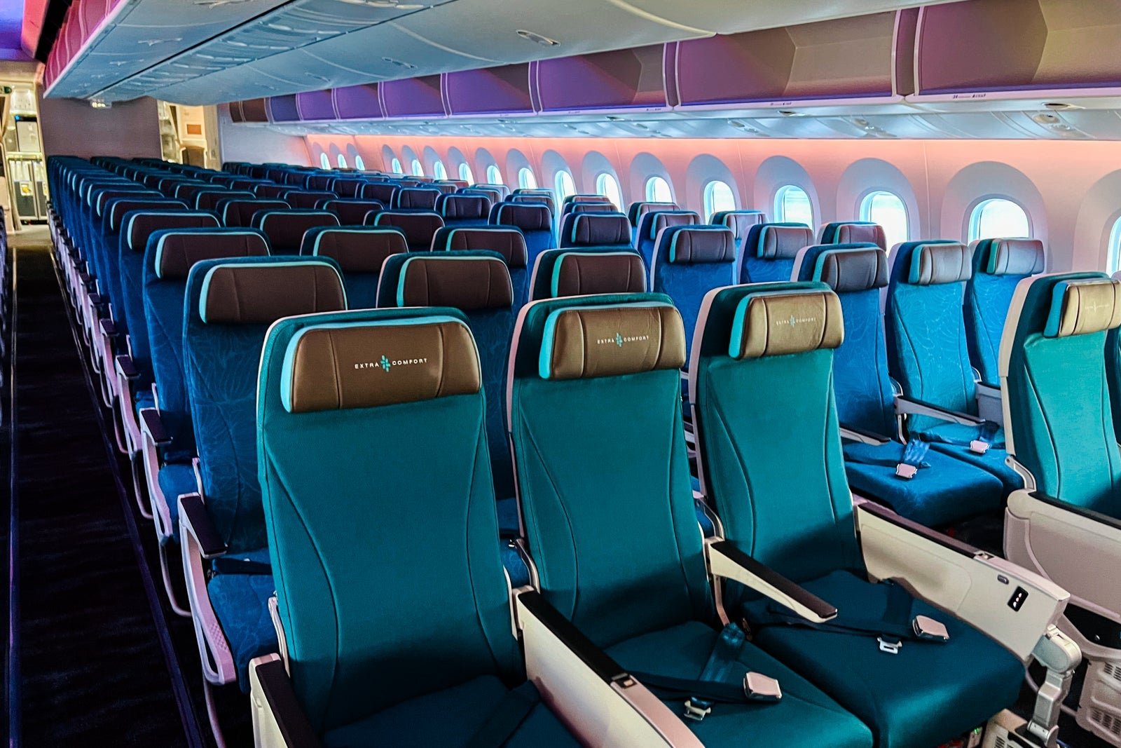 There are also two fixed universal electric outlets underneath each set of three seats in the Extra Comfort section.