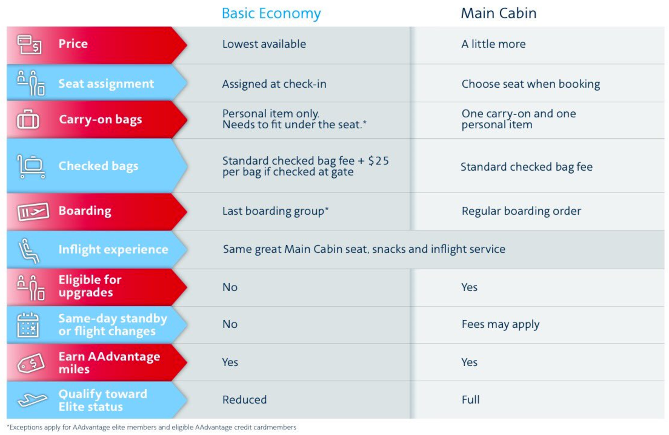 Here's a breakdown from American, comparing basic economy with regular coach fares: