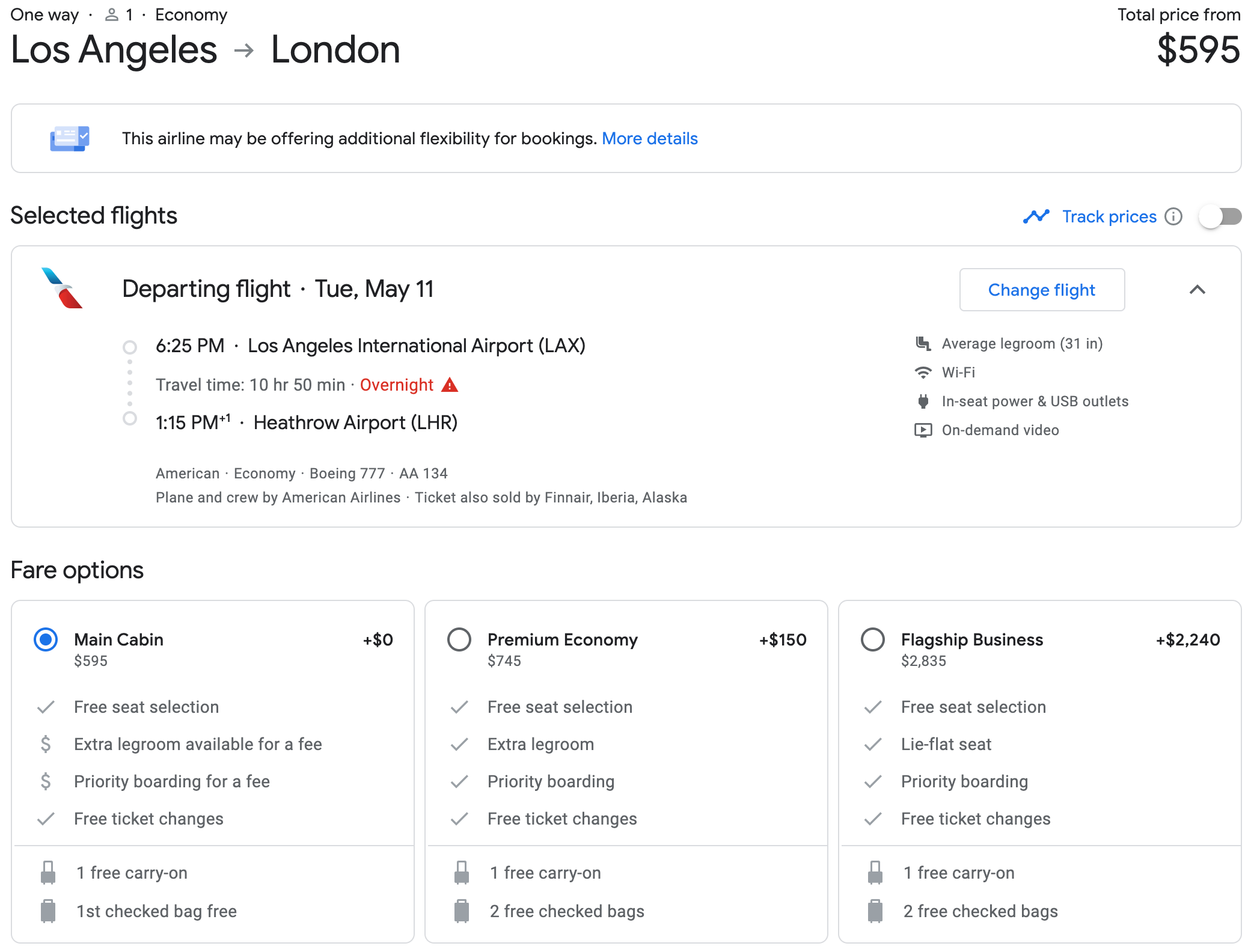 In the case of this particular flight, a one-way economy ticket can be had for $595, compared with $2,835 for business class — that's a heck of a deal.