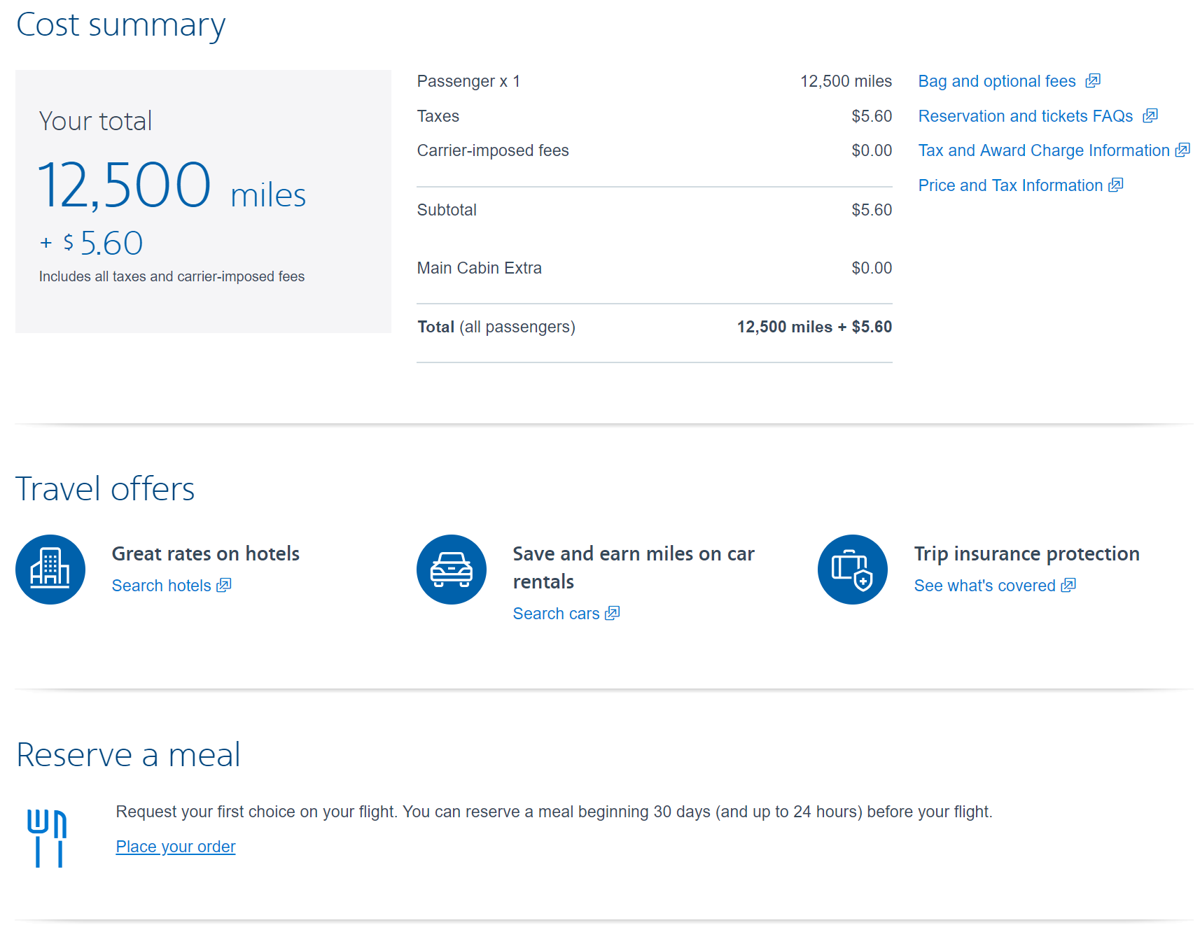 If your reservation is eligible, scroll down on the reservation management screen to find the "Reserve a Meal" section. Select "Place your order" to start the process: