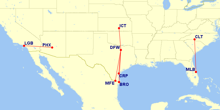 - Dallas/Fort Worth (DFW) -- McAllen (MFE)