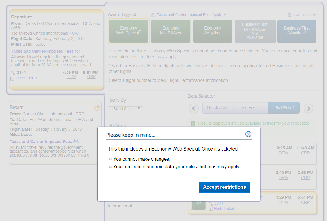 The good news is that these awards don't have American Airlines Basic Economy-style limitations. This means that you'll be able to choose your seat at booking and won't be banished to Group 9 boarding. And Executive Platinum elite booking one of these awards even get the chance to add themselves to the upgrade list -- as they can on other domestic economy awards: