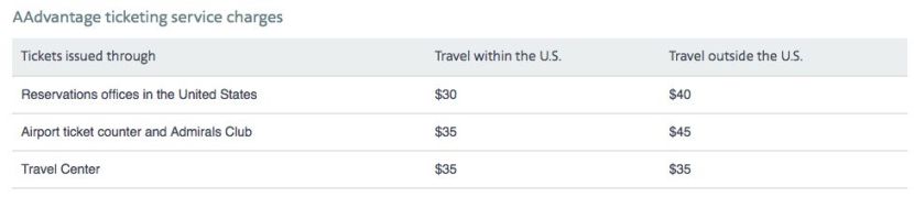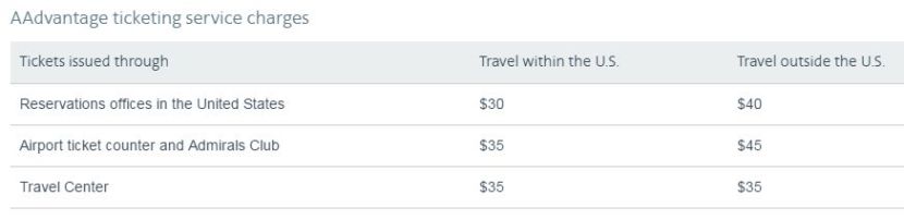 Update 5/2/16 7:00pm: AA has reinstated the award ticketing fee, which was apparently removed in error during a site update today. Bummer! Here's the corrected fee structure (which also includes corrected amounts for "Travel Center" bookings: