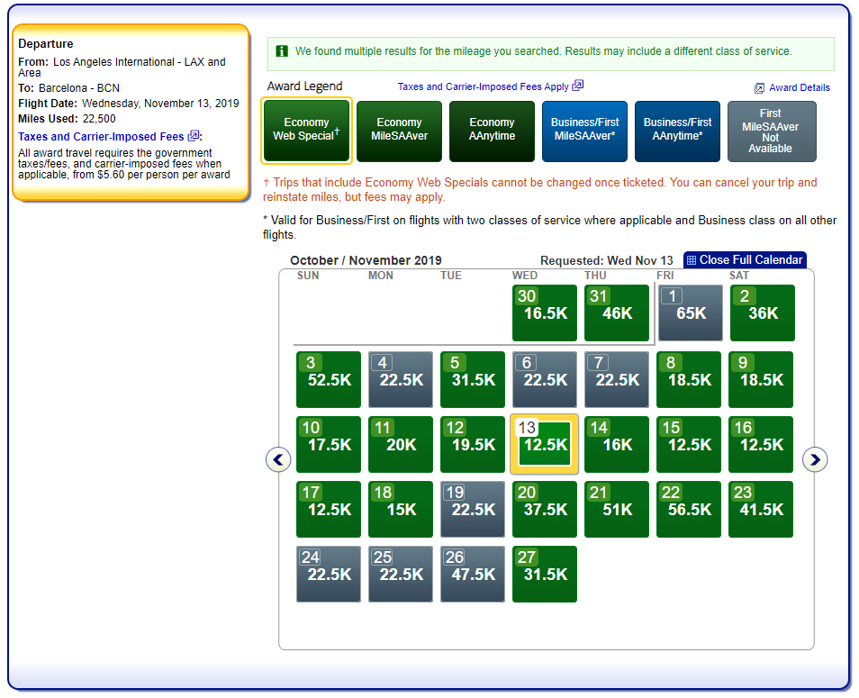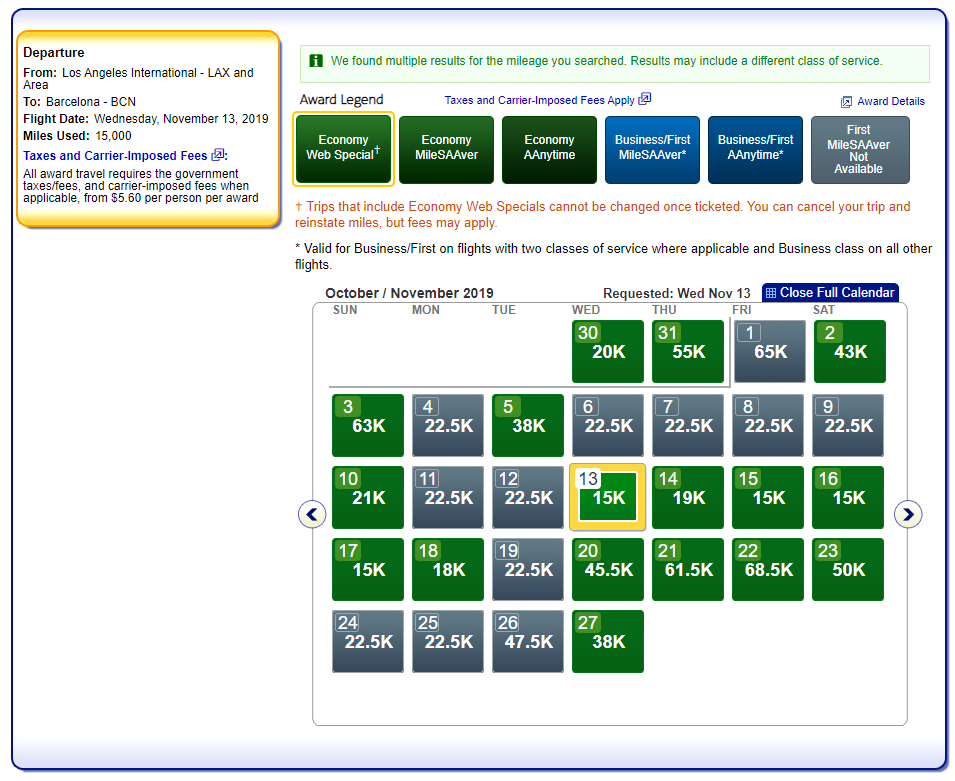 Unfortunately, it's not just award flights between the U.S. and Australia that are affected. I checked award flights between Los Angeles and Barcelona (BCN) and found similar pricing differences. For example, here are the results searching one-way: