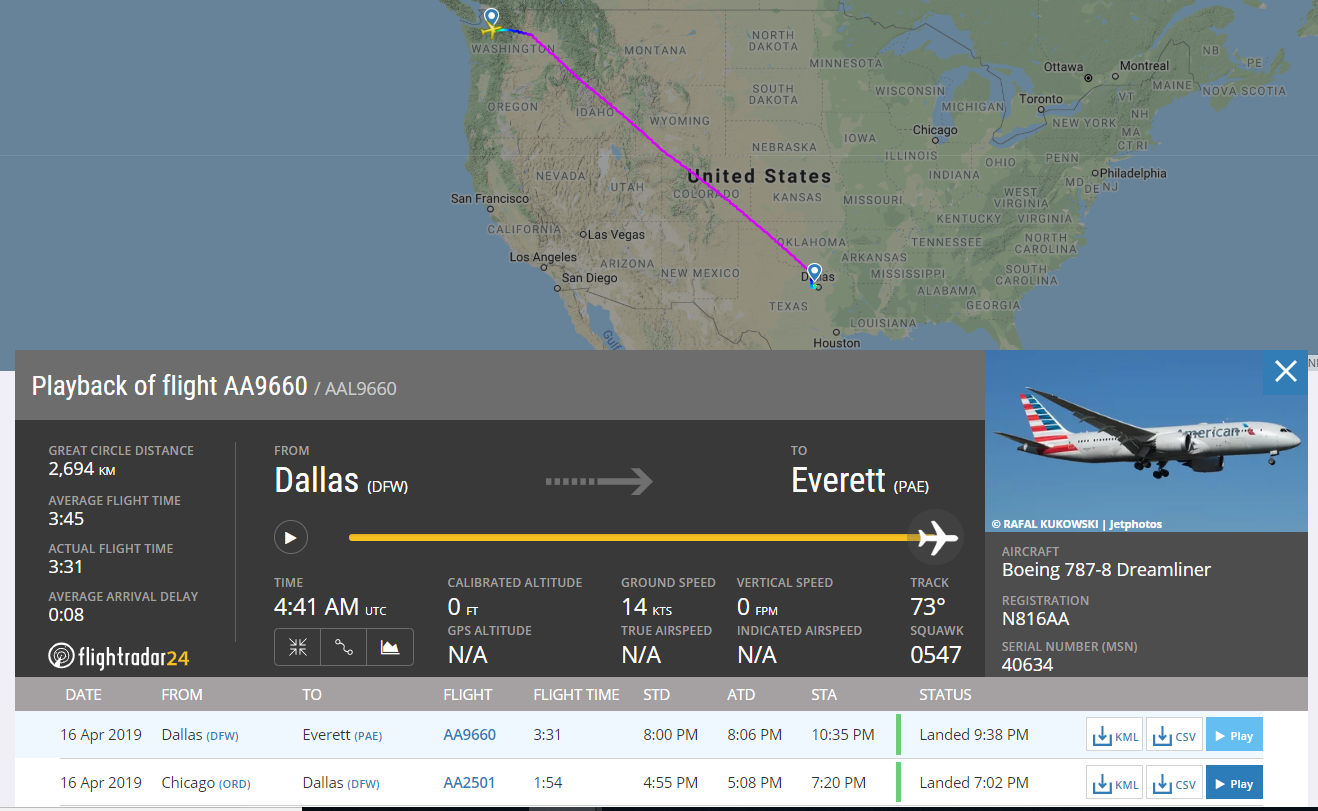 On Tuesday evening, the final aircraft to get a premium economy retrofit, a Boeing 787-8 Dreamliner with registration N816AA, was ferried from Dallas/Fort Worth to Everett. In a couple of weeks, this aircraft should return to service to complete the international retrofit process.