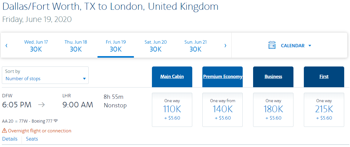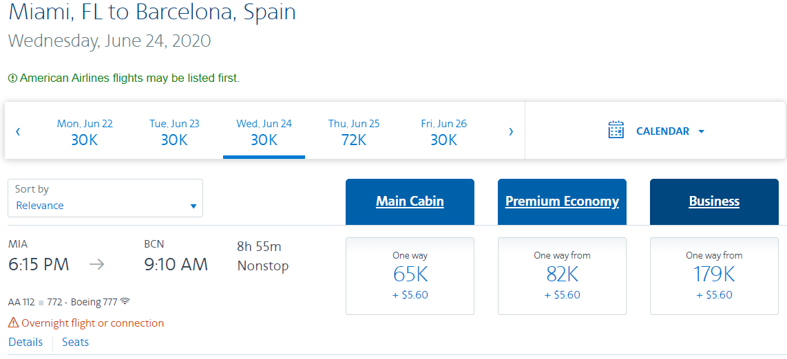 For example, for business class awards between the U.S. and Europe, the published AAdvantage award chart tops out at 135,000 miles each way. However, we are finding business class pricing as high as 179,000 miles each way: