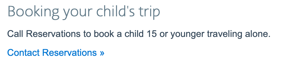"Since the web special awards must be booked online, and minors traveling alone cannot be booked online, a different type of award ticket will have to be chosen for their travels."