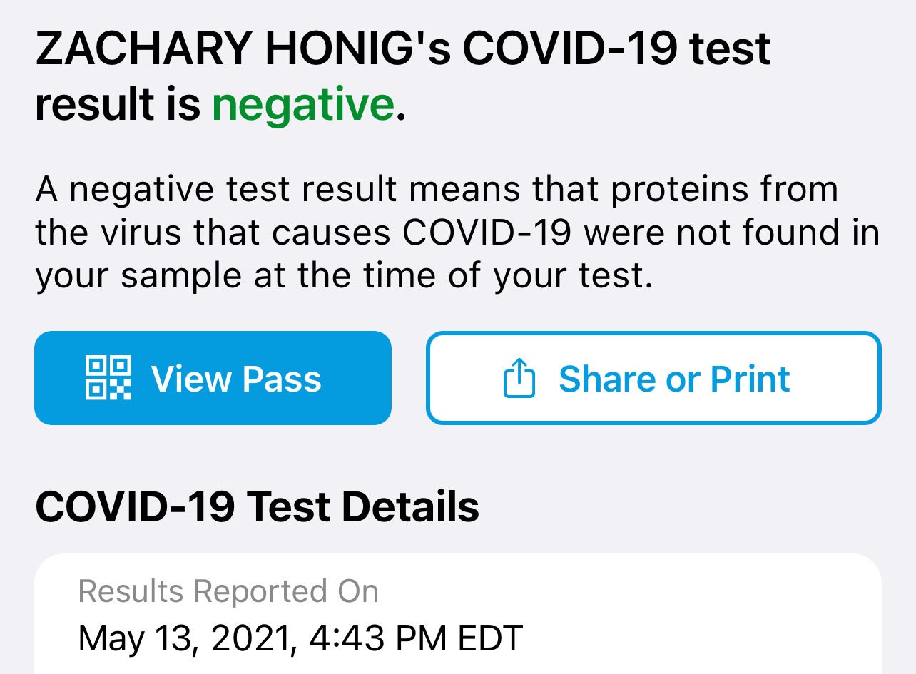 After scanning the QR code on my test and confirming the negative result — one thin pink line, instead of two — she sent me my results via email and ended the call. The results were available instantly in my Navica app as well.
