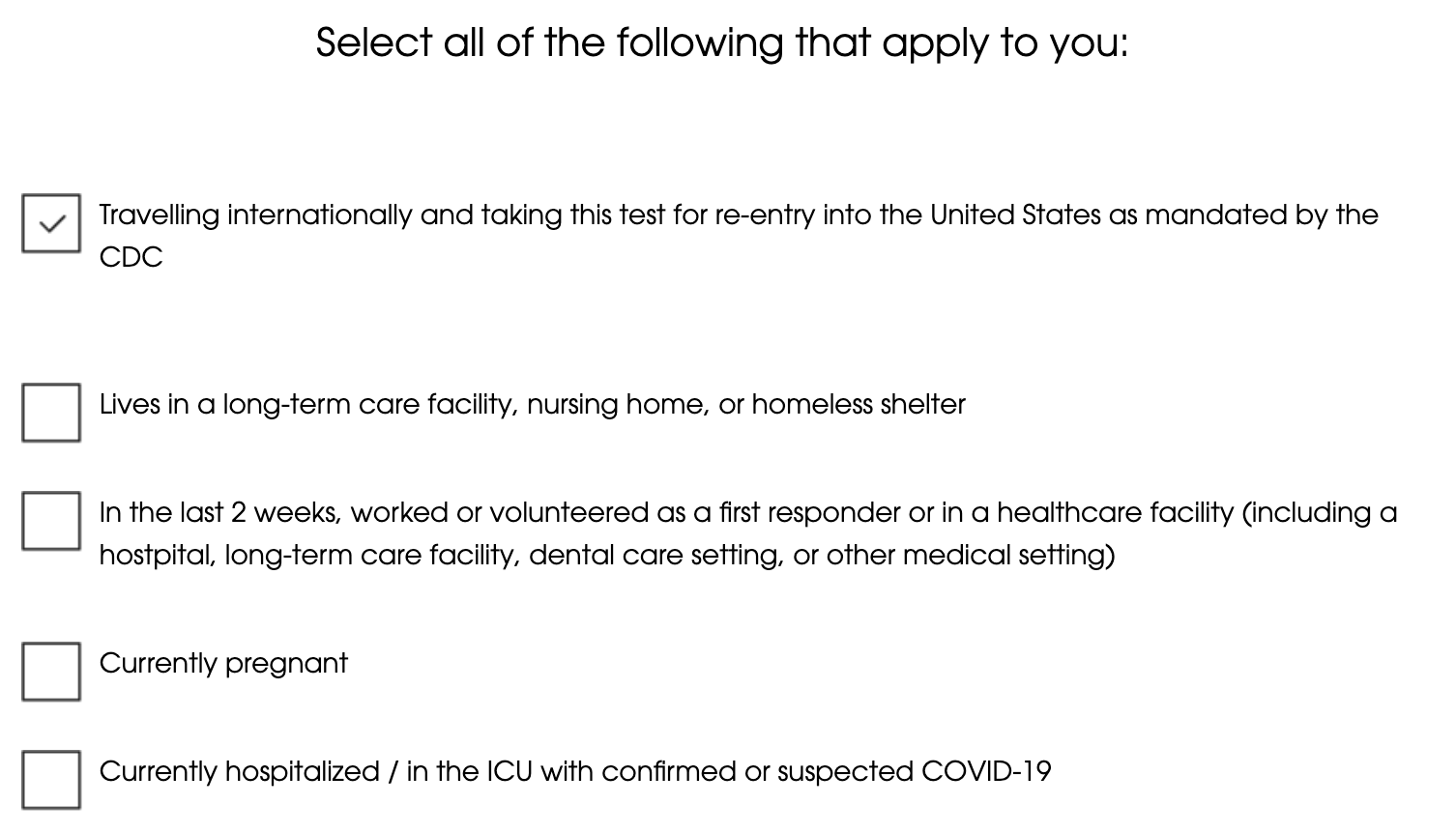 There was an option specifically for people testing for re-entry to the United States, so that's what I picked.