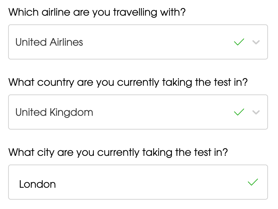 I was prompted to select my airline and country from a drop-down menu, with a field to enter the city as well.