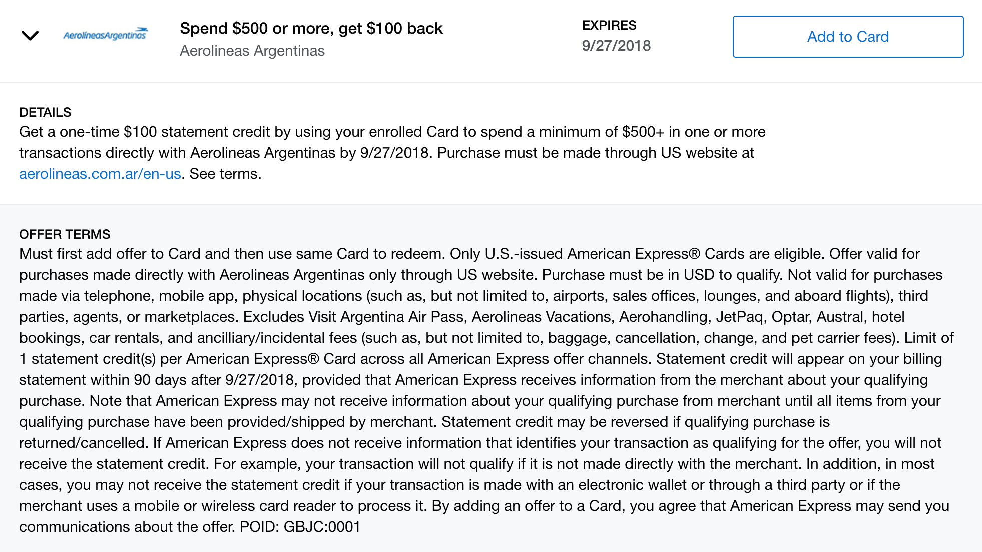 Amex Offer: Get $100 Back After Spending $500 With Aerolineas Argentinas
