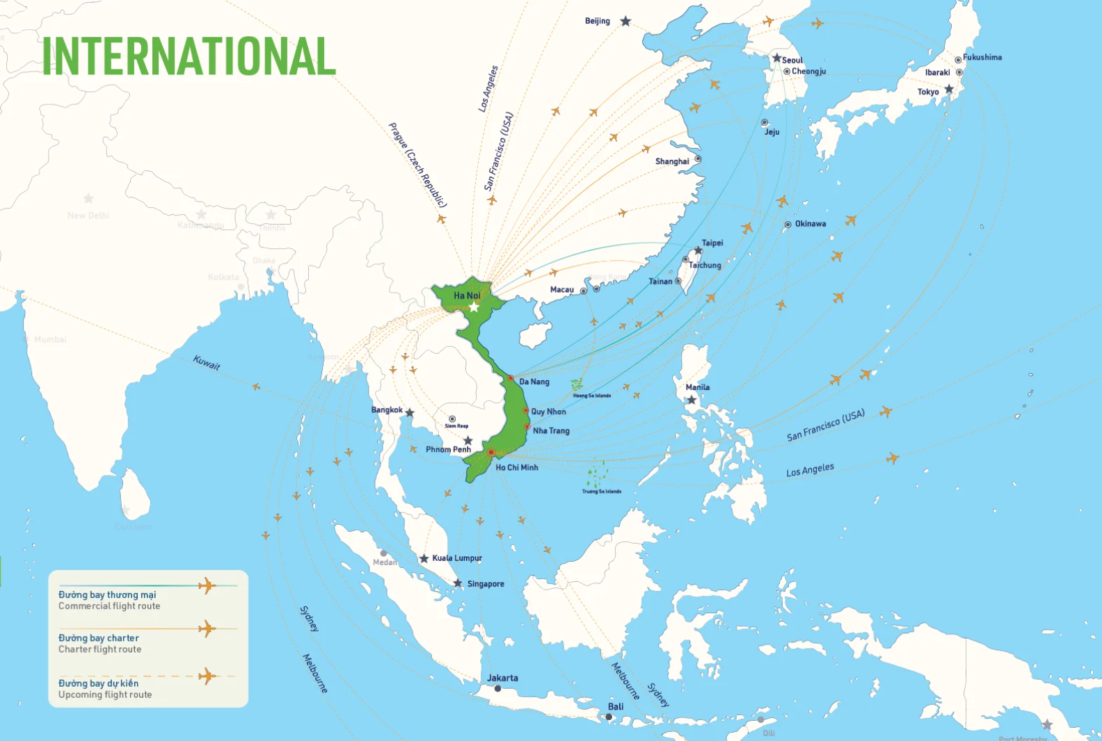 Bamboo Airways flights can be combined with flights on other Aeroplan international partners to create larger awards. Bamboo Airways' hubs for international travel are Hanoi and Ho Chi Minh City.