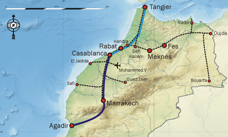 The new LGV high-speed rail line now connects the economic hubs of Tangier and Casablanca in two hours and ten minutes. In comparison, the regular train takes almost five hours to traverse the same route. The LGV will travel at a speed of up to 320kph, or 199mph. The line may eventually be extended to connect Tangier to Marrakech in just three hours, a route that currently takes ten hours by train.