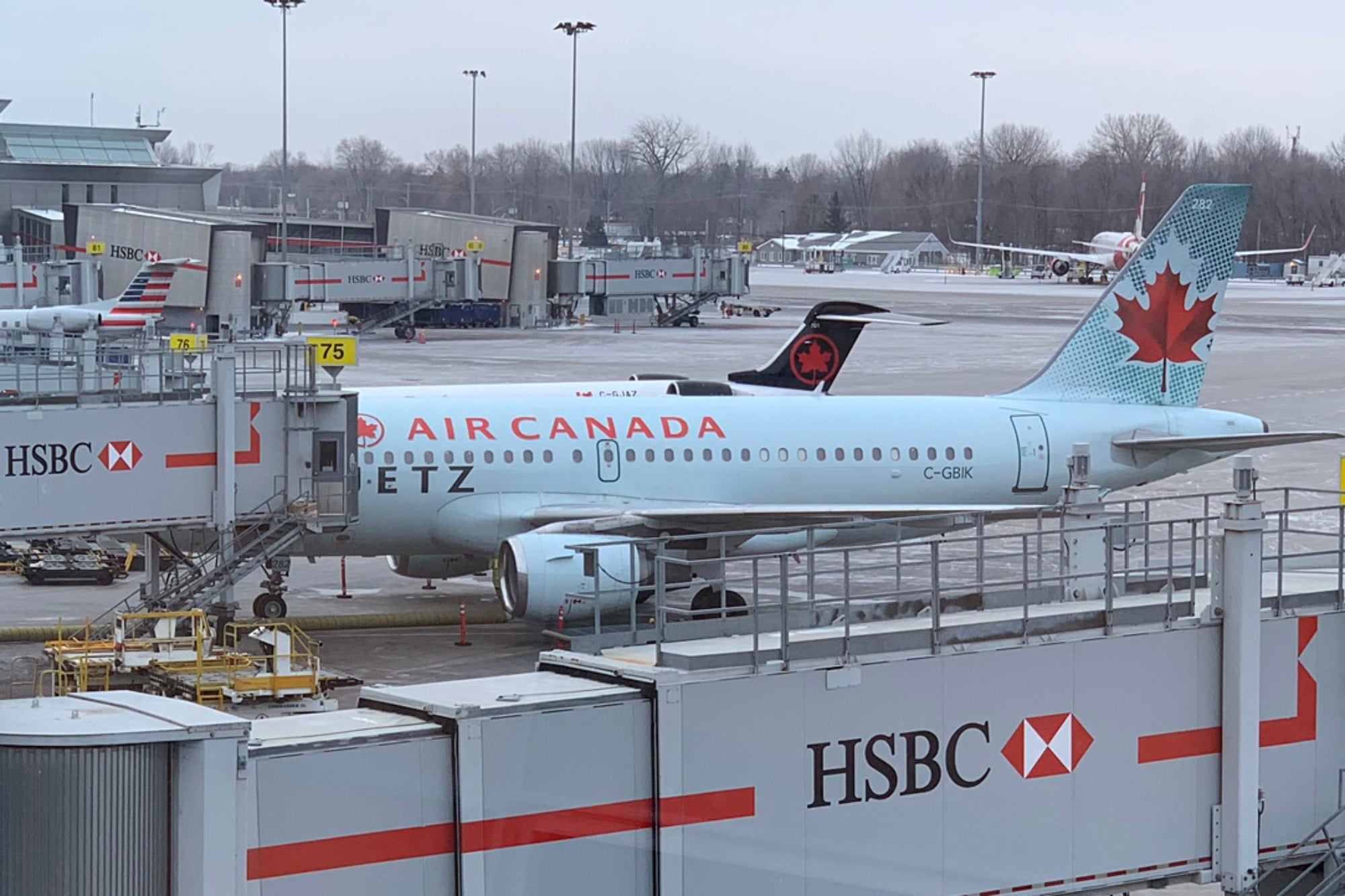 I spotted our plane parked at Gate 75, just around the corner from the lounge. Our A319 actually looked fairly large compared to the other transborder aircraft flying from the US gates in Montreal.