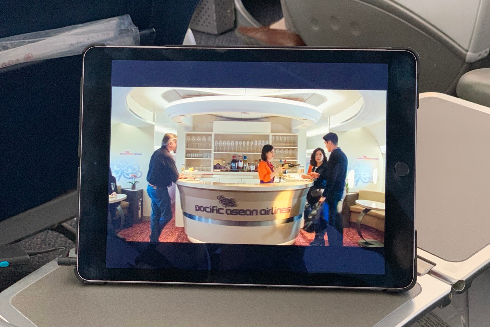 As for entertainment, there wasn't anything built into the seat, but crew members did come through the cabin with loaner iPads well into the first leg.