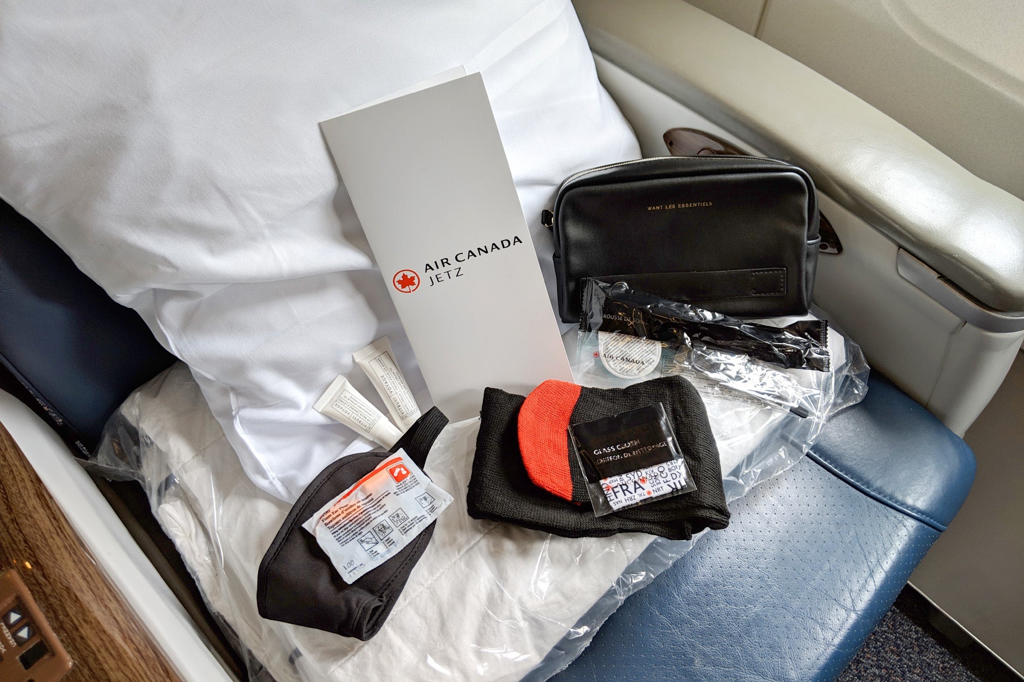 I've never received an amenity kit on such a short flight. I didn't find much use for the eye mask, earplugs or socks, but the dental set definitely came in handy at the next hotel.