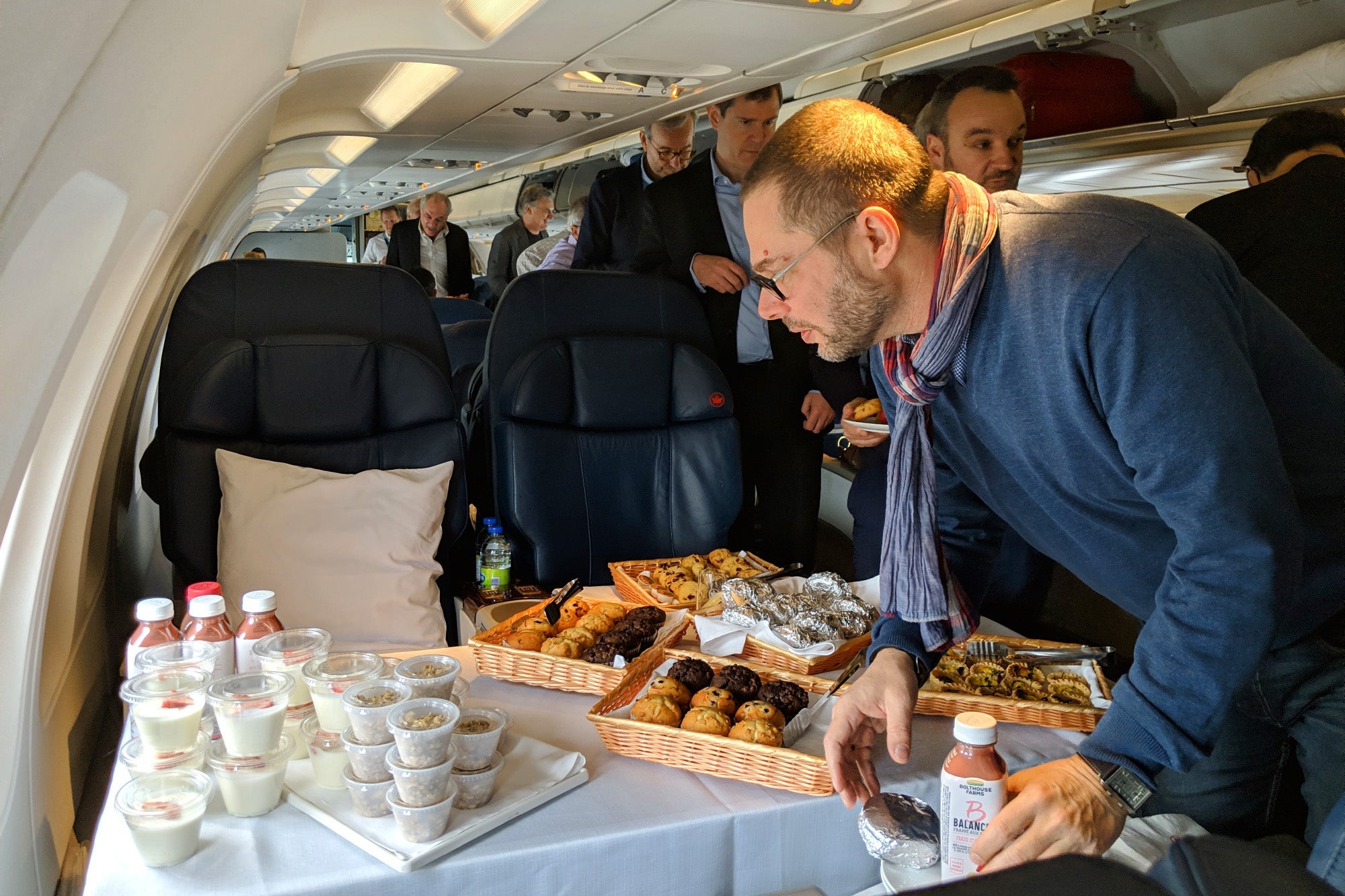 Although there was more than enough food on this flight, the crew members did not bat an eye — they were used to serving athlete-sized portions, and apparently our spread didn't even come close.