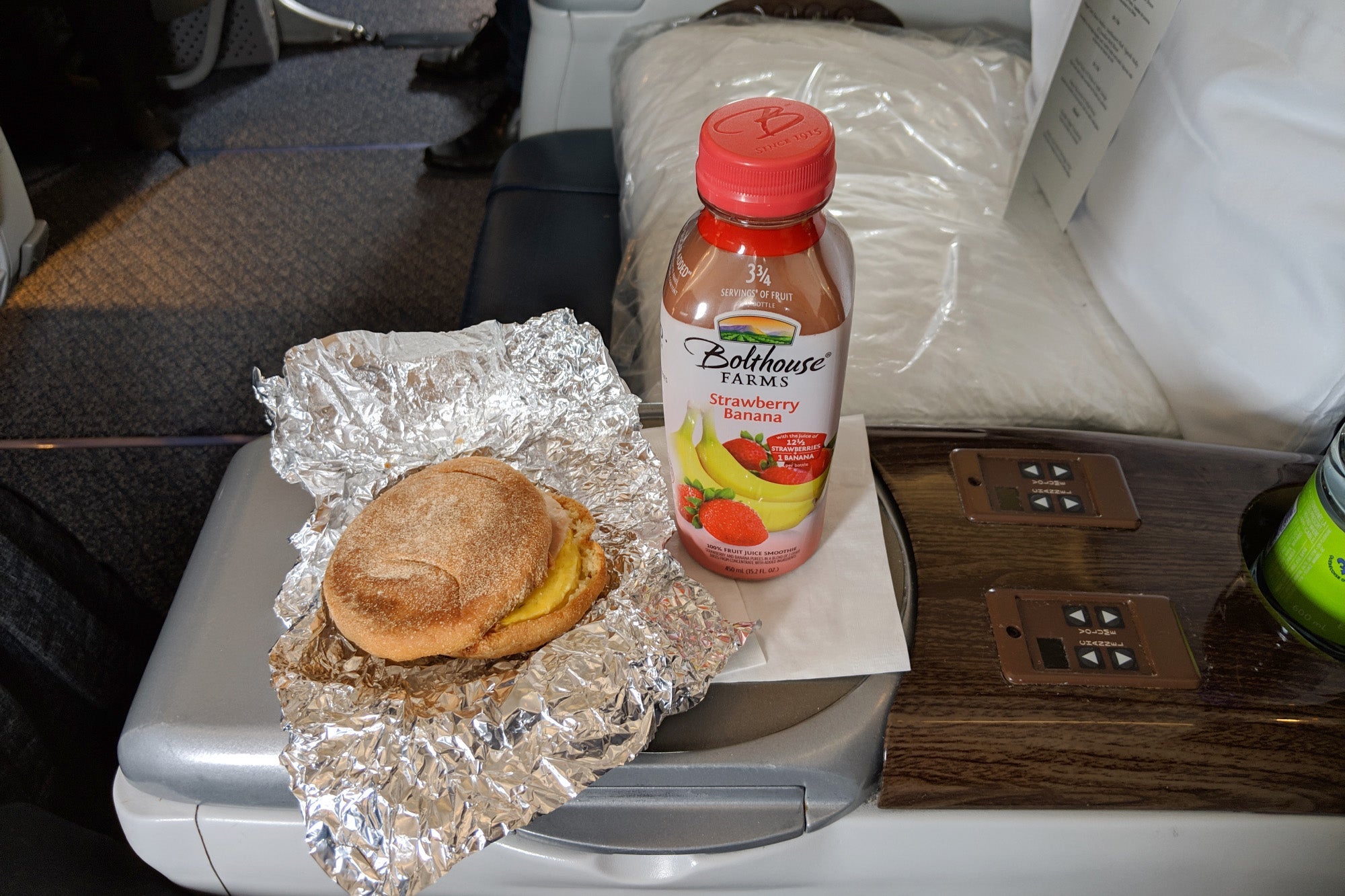 I was pretty hungry, so I grabbed a bacon, egg and cheese sandwich and a smoothie.
