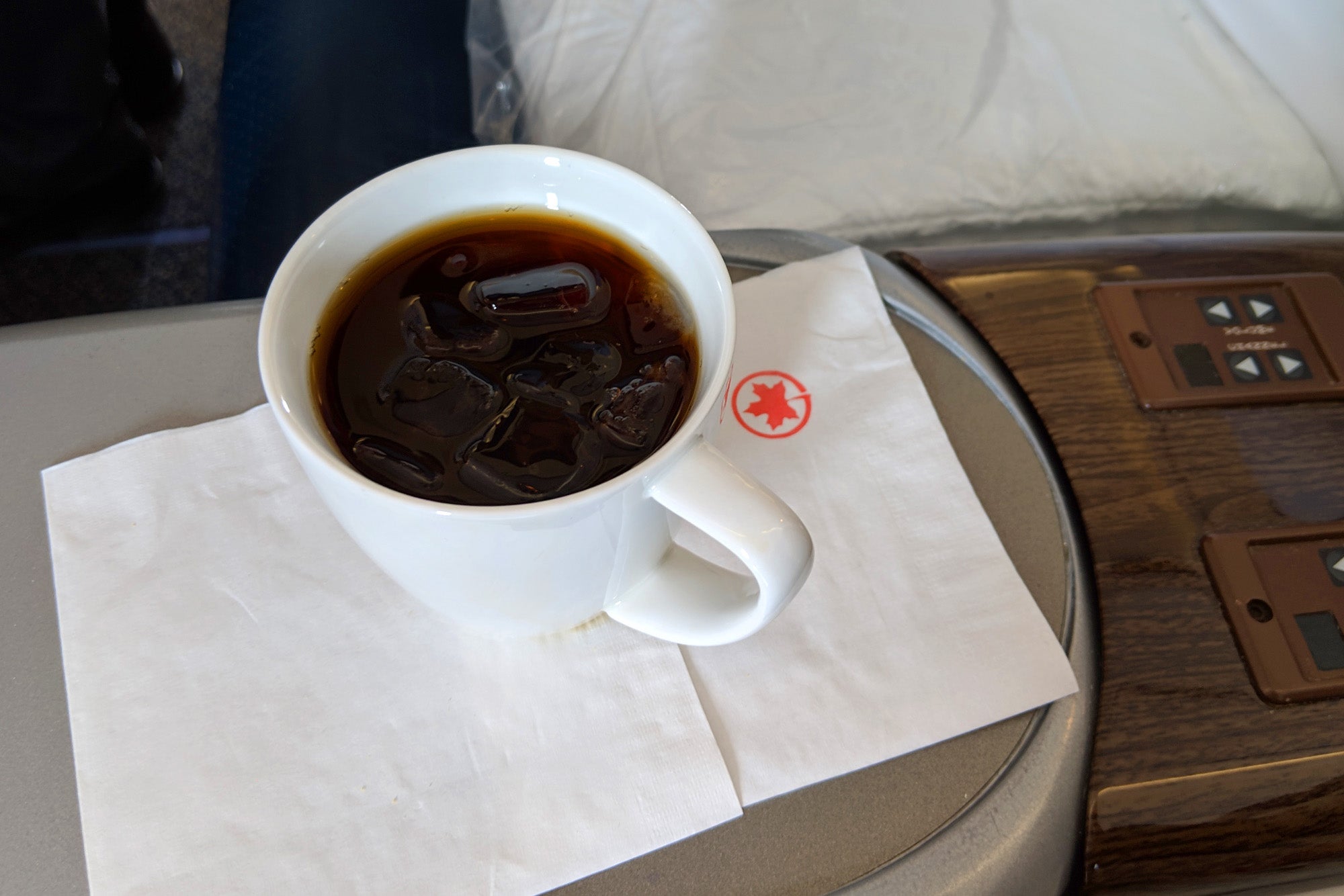 The flight attendants also came by to introduce themselves and offer other beverages, as well. I requested an iced coffee, which apparently isn't a popular request on Air Canada Jetz. The flight attendant managed to prepare it as requested, though.