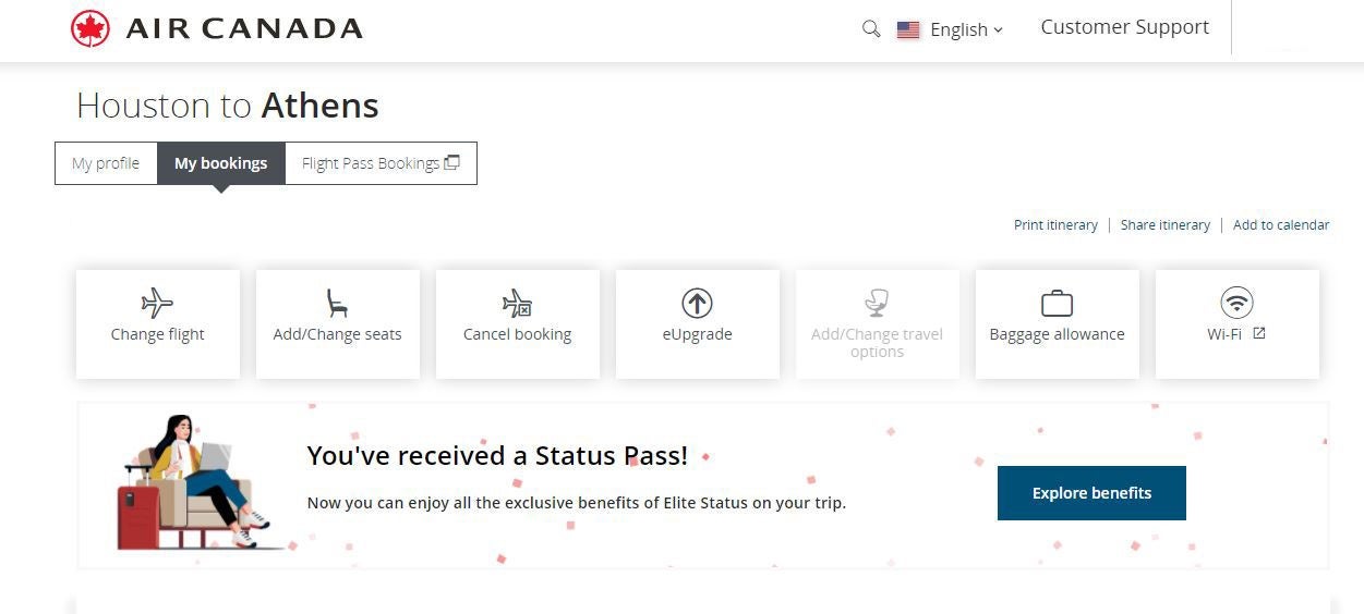If you've already received your status passes, you can share them right away. Your recipient should receive a notification when they pull up their reservation on Air Canada's website, along with a link to the full list of bundled perks.