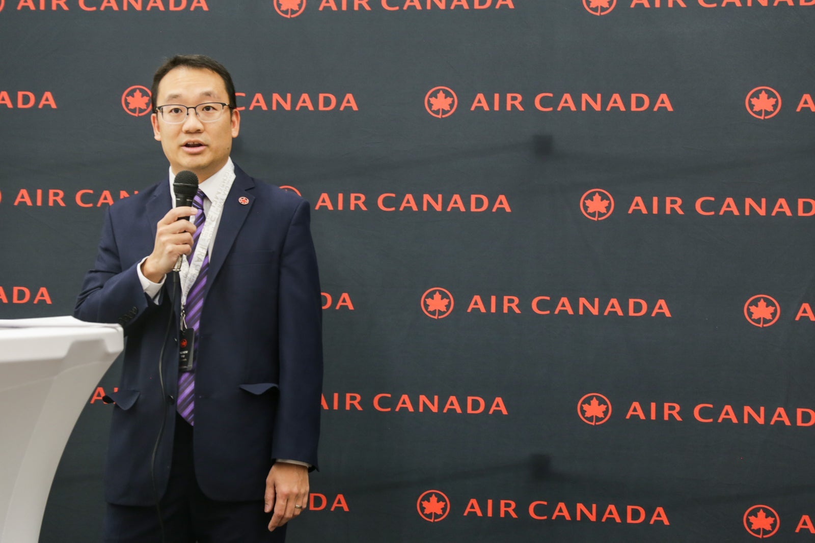 Andrew Yiu, Vice President, Product at Air Canada spoke about the carrier's history at LaGuardia, mentioning that the airline has a 75-year history with the airport — it made its first flight from Toronto to LGA in 1945. HOK, the design and architecture firm that's heading up the entire LaGuardia renovation, also designed the new Maple Leaf lounge.