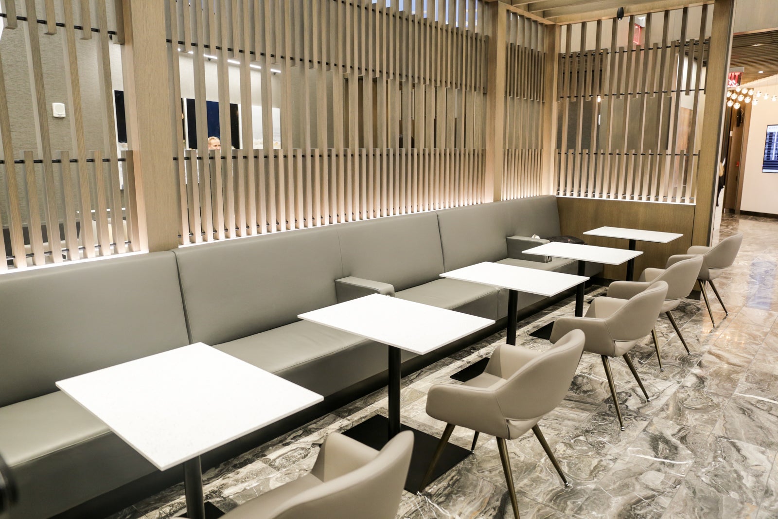 The lounge has a moderate capacity of just 126 travelers, although that's double the size of the airline's old lounge at LGA. Still, there's plenty of seating throughout the space. You'll find traditional tables were you can nibble on light bites.