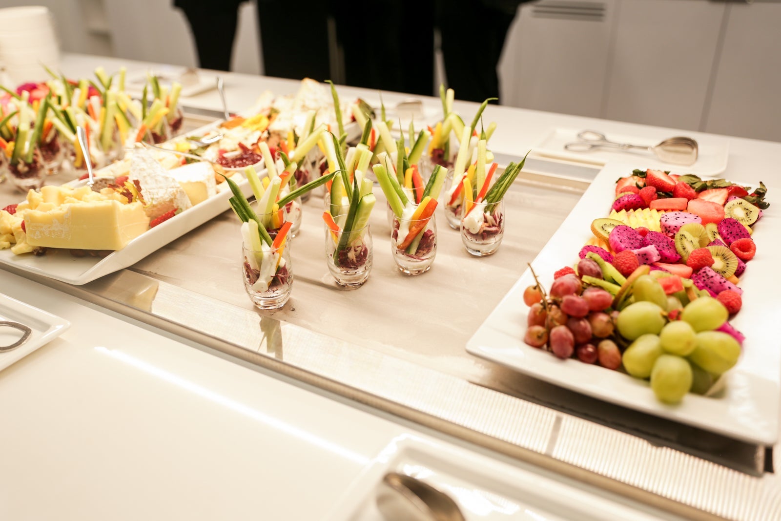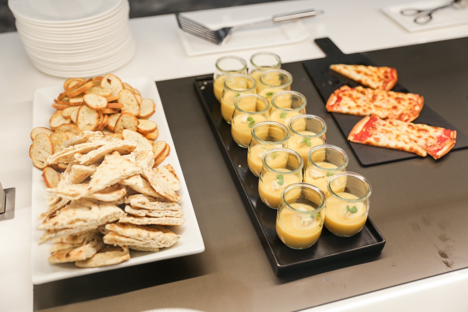 There will be a variety of lite bites to pick from. I found a plate with assorted cheeses, cups of fresh veggies with dip and an extra colorful fruit plate. This food may not be representative of what's actually served now that the lounge is open to the public.
