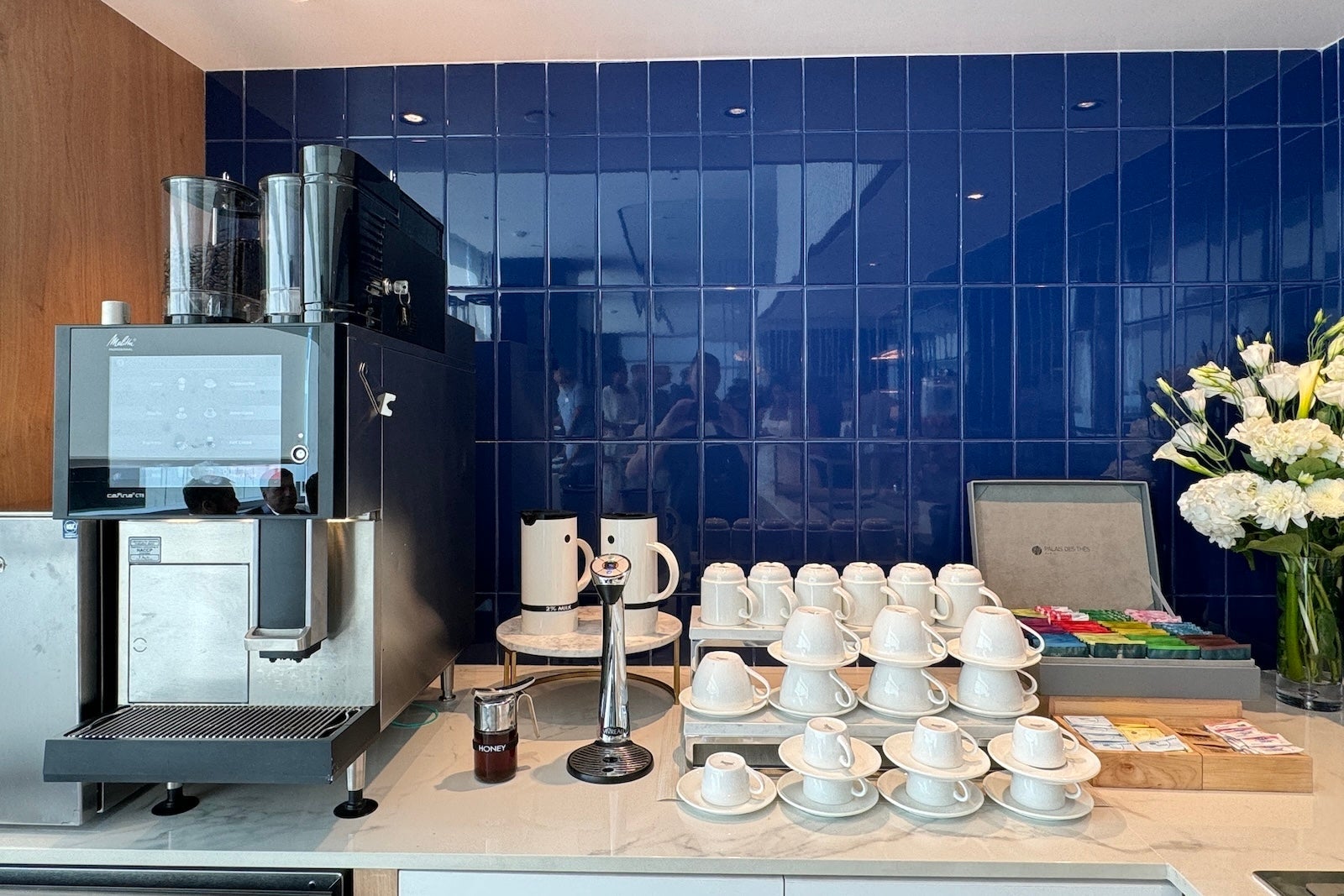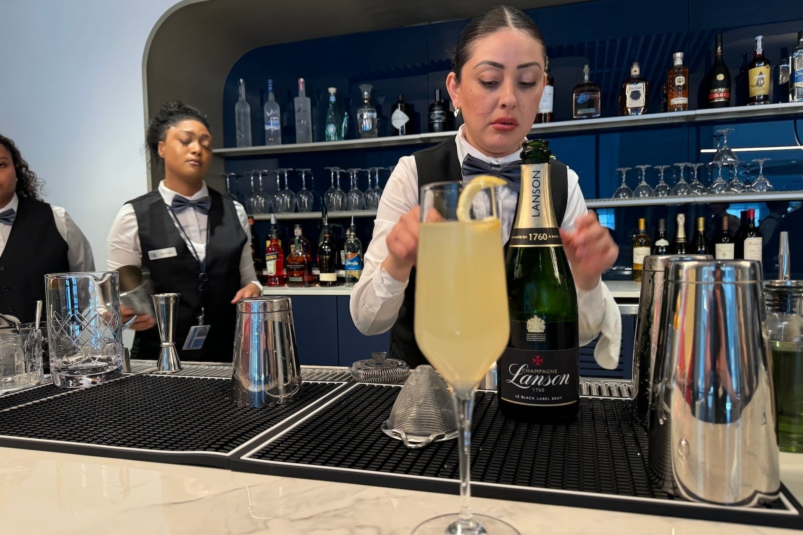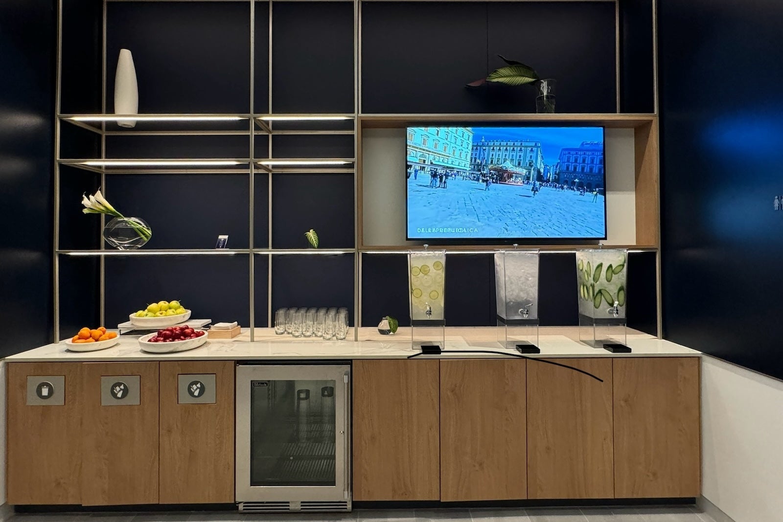Sustainability-minded customers will appreciate the fact that the lounge has streamlined its food service and disposal to reduce waste, and provides drinks dispensers and water fountains so that loungegoers can fill their own bottles to take with them, reducing the use of single-use plastics.