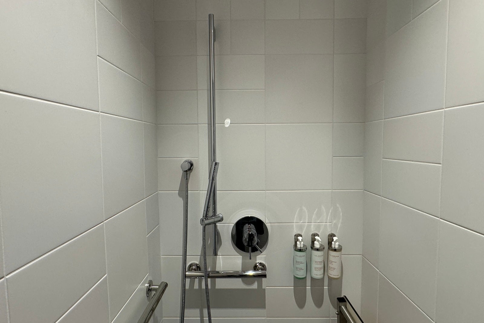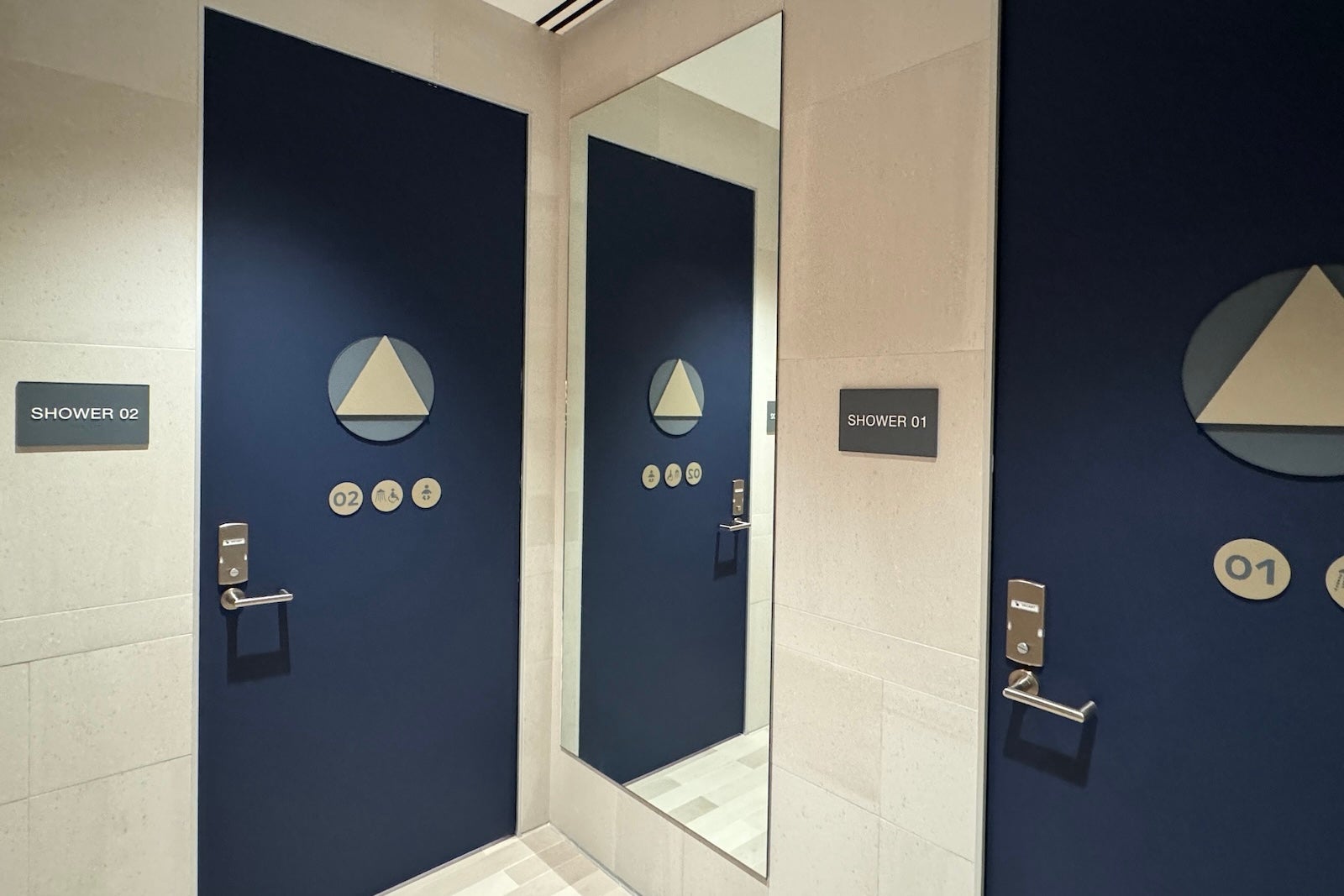 Can't snag a spa treatment but still want to freshen up? You can take advantage of the lounge's two shower cubicles, which include walk-in showers with bathing benches stocked with Clarins products, spacious sink areas for primping and their own private toilets. These, too, will be available on a first-come, first-served basis.