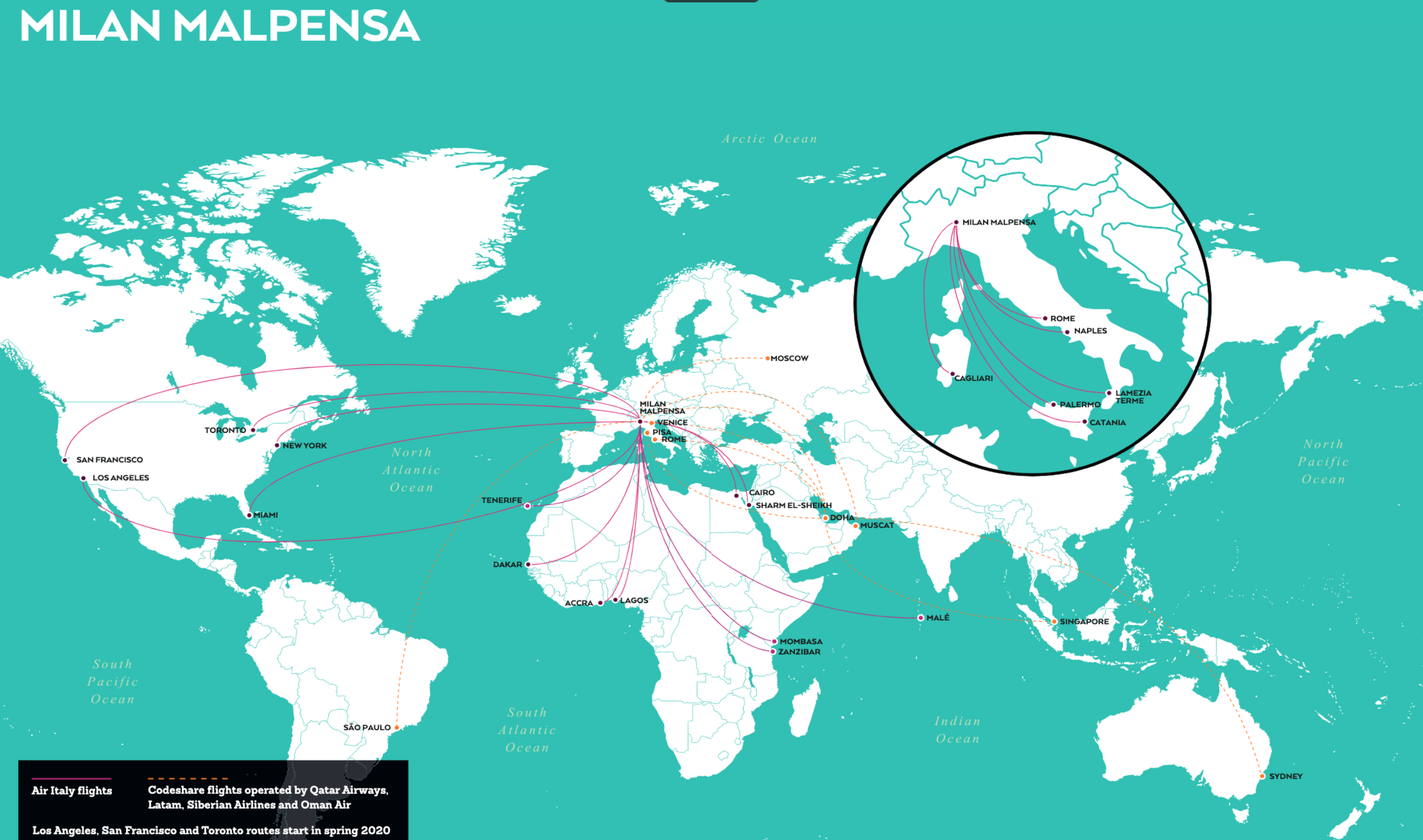 "Malpensa is in a region which is really the economic heart of Italy, and has not been the hub for Italy. The hub for Italy is Paris and Munich. It is now our duty towards the Italian people as a shareholder of Air Italy to establish a very strong hub," Qatar CEO Akbar al Baker told TPG on the airline's ambitions for Air Italy in a May 2018 interview.
