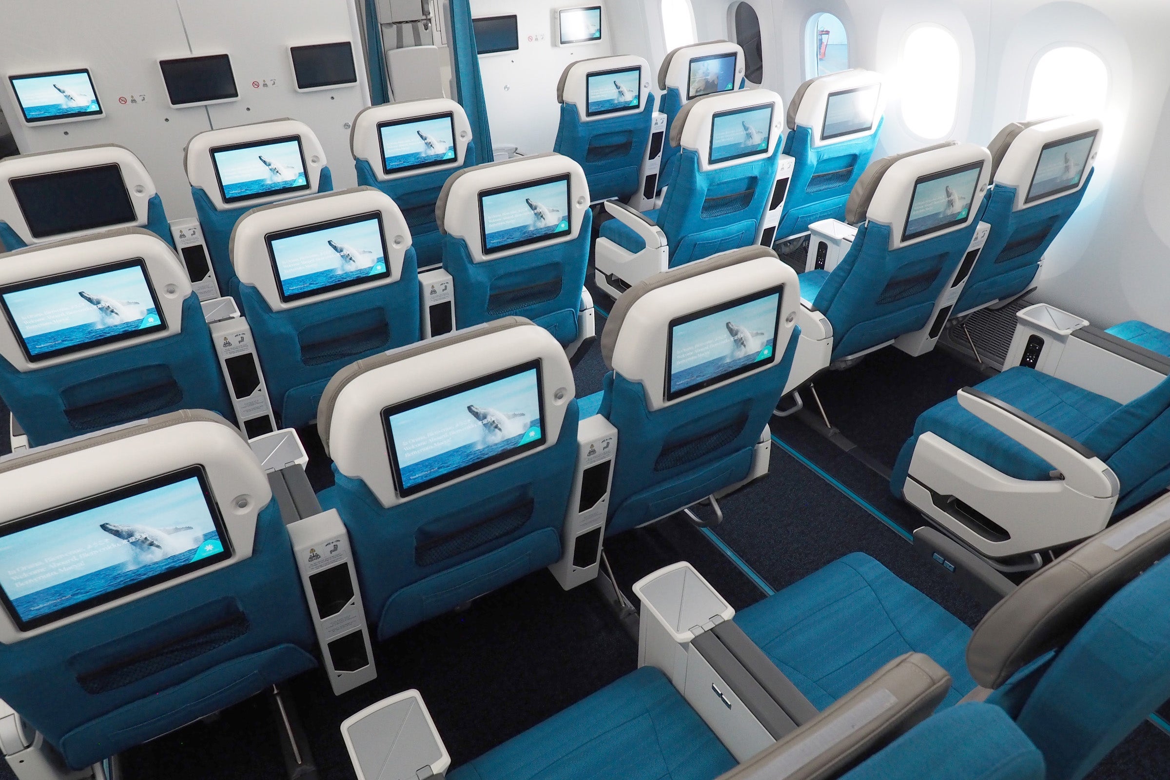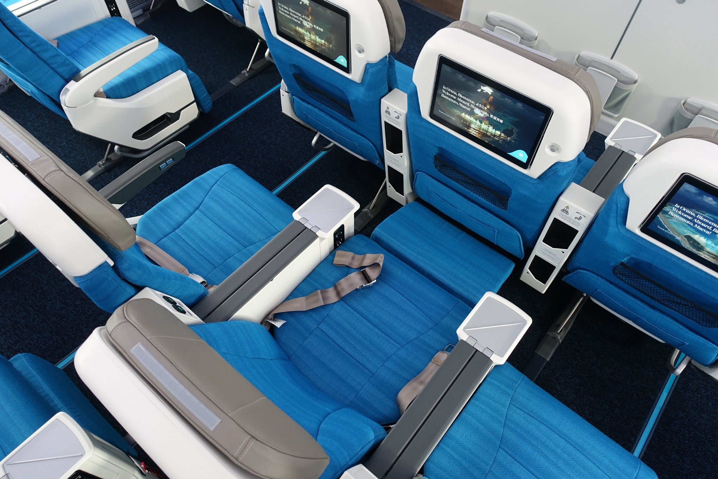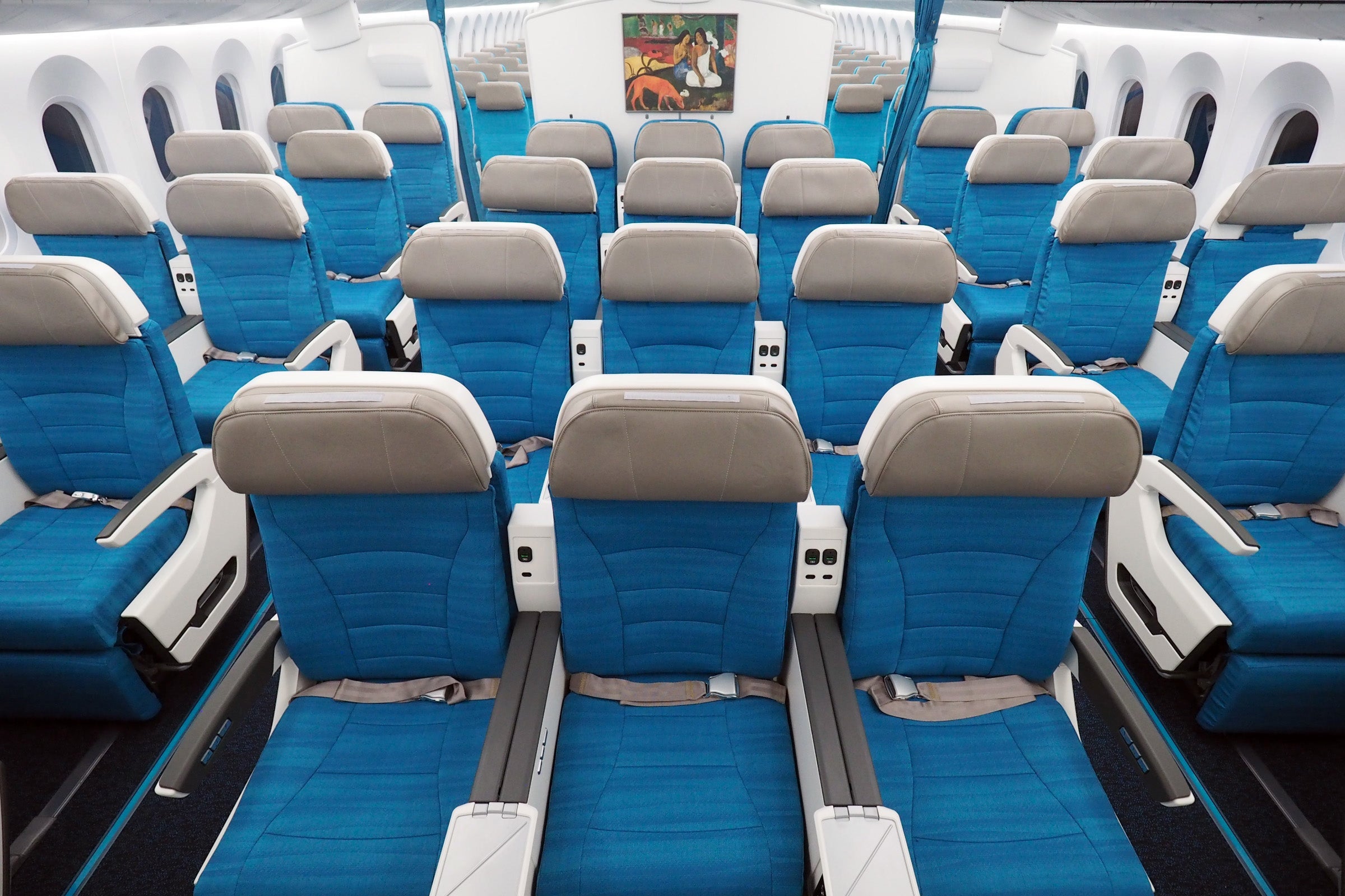 Air Tahiti Nui's 787 is the airline's first plane to offer a premium-economy cabin, with a total of 32 seats arranged in a 2-3-2 configuration.