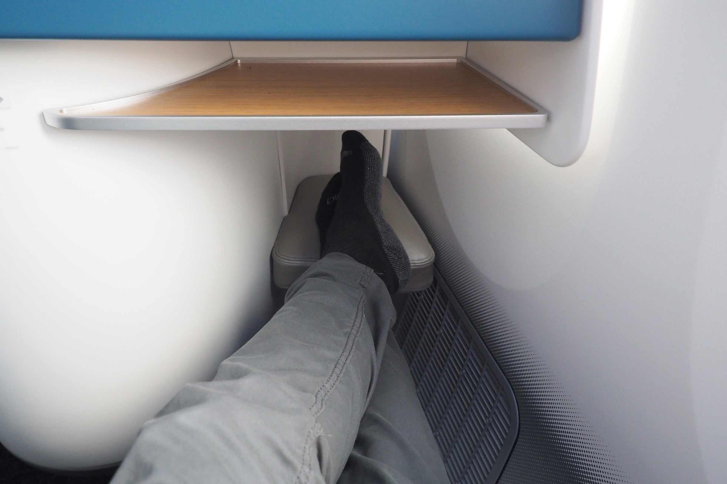 I noticed one peculiarity, though — non-bulkhead seats have a slide up leg rest as well, but there isn't any room for your feet when it's extended, so all but the airline's smallest customers won't be able to take full advantage.