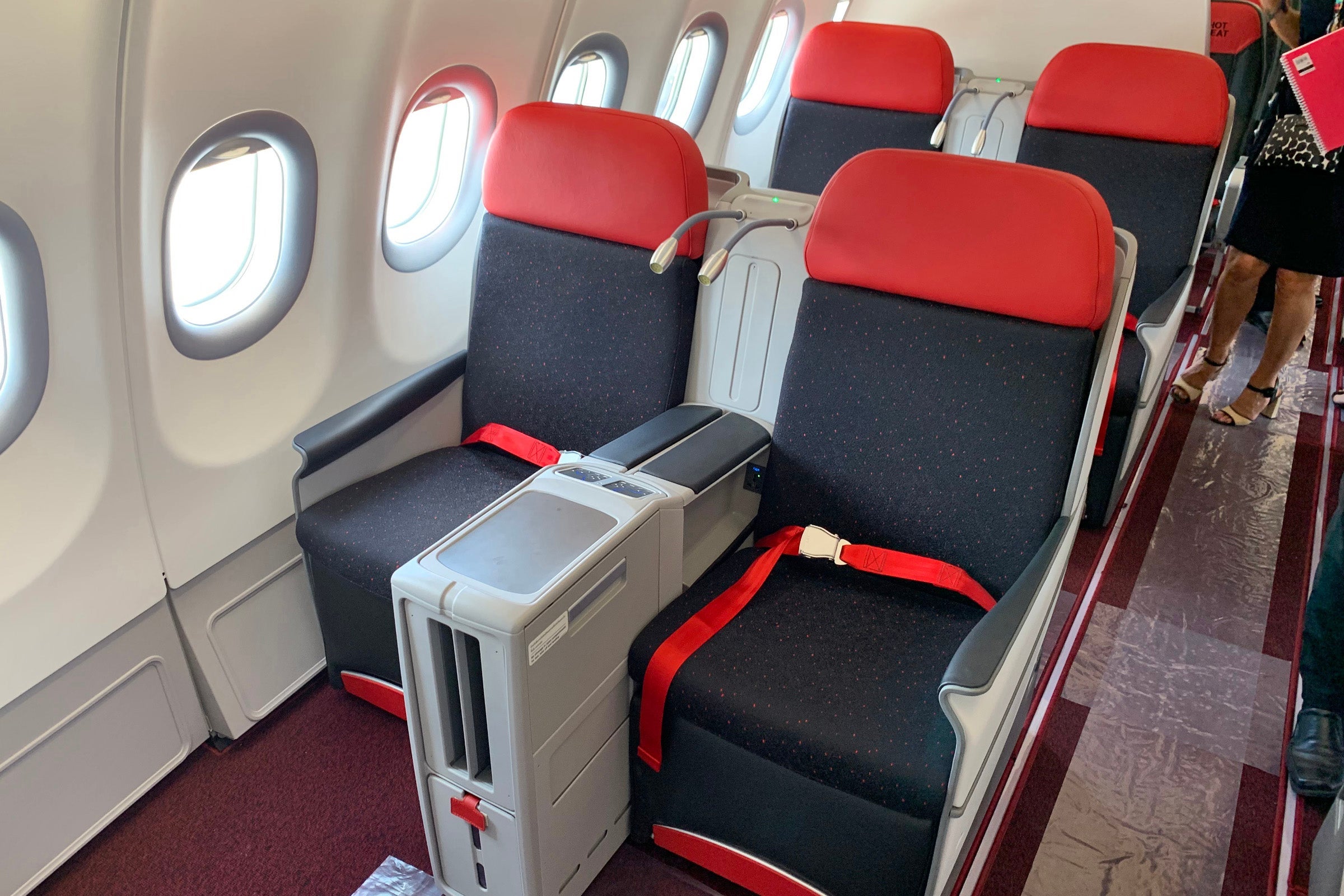 It's hardly luxurious — AirAsia is focused on keeping fares low, and that clearly shows as you walk through the tiny premium cabin, followed by a sea of economy.